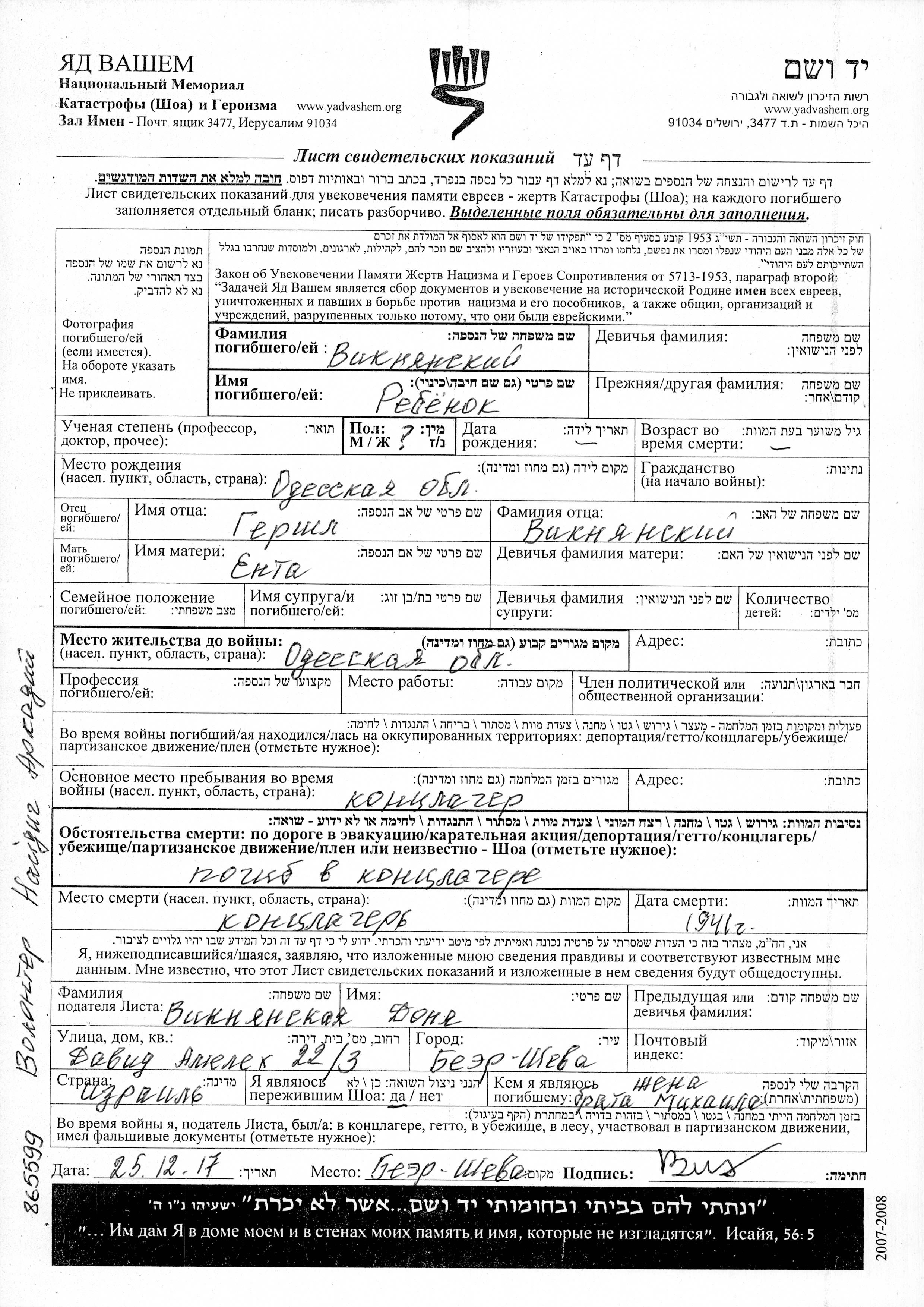 Yad Vashem - Pages of Testimony Names Memorial Collection