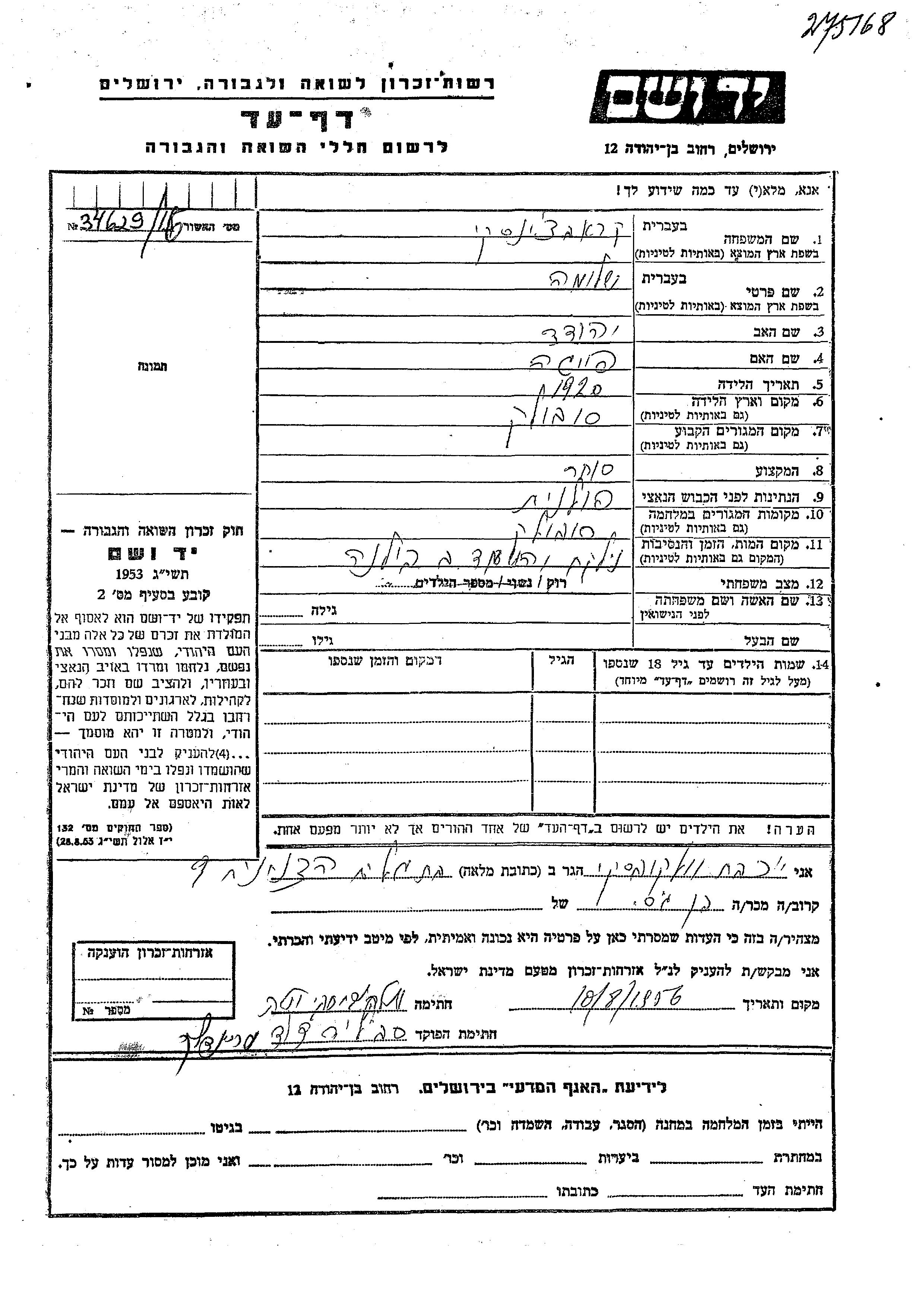 Yad Vashem - Pages of Testimony Names Memorial Collection