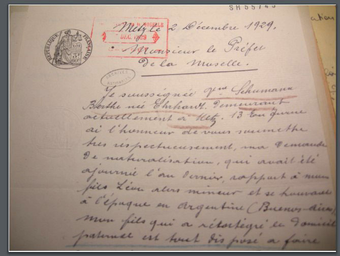Schuman Leon 1909 Metz, France Feuille de témoignage