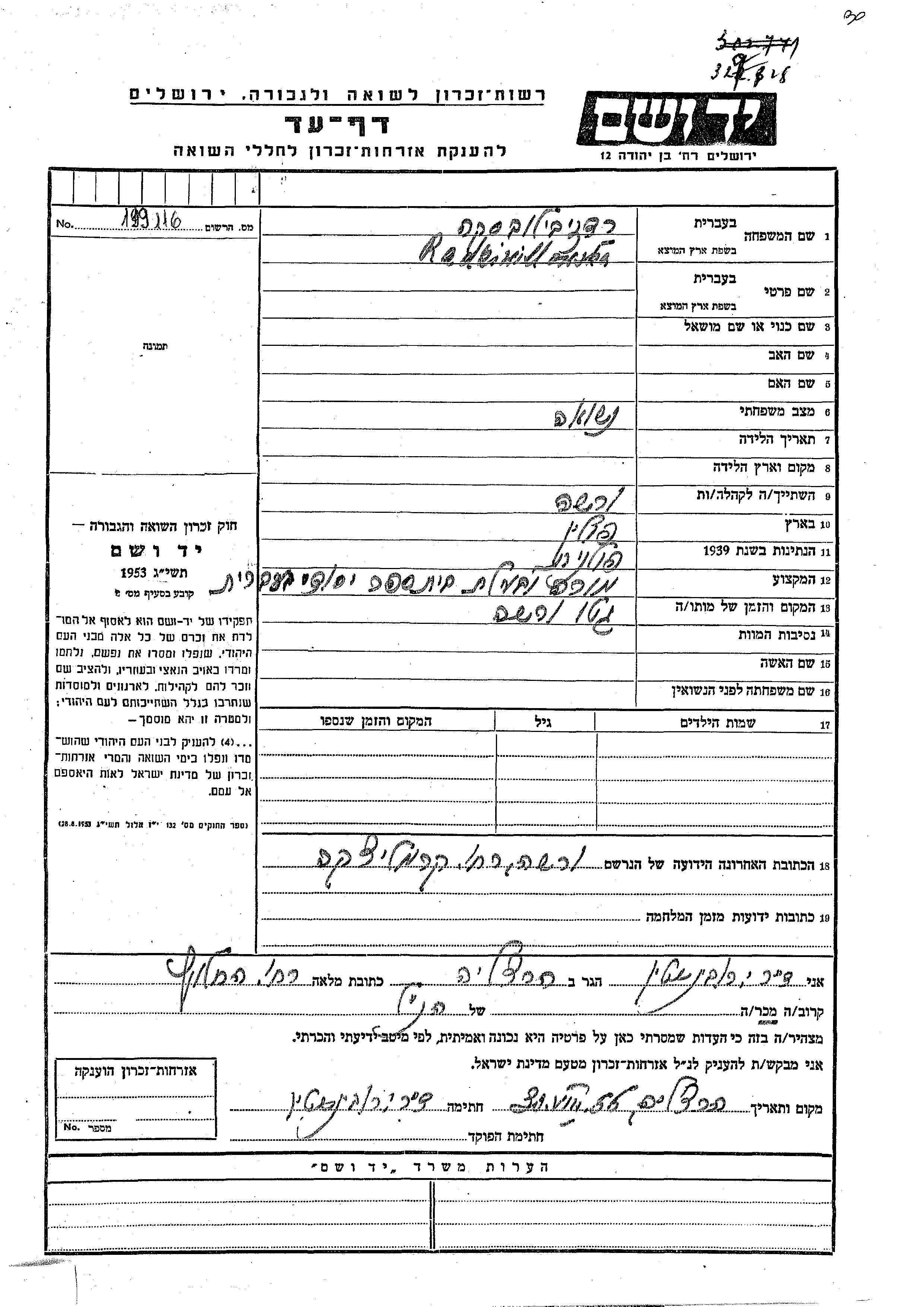 Yad Vashem - Pages of Testimony Names Memorial Collection