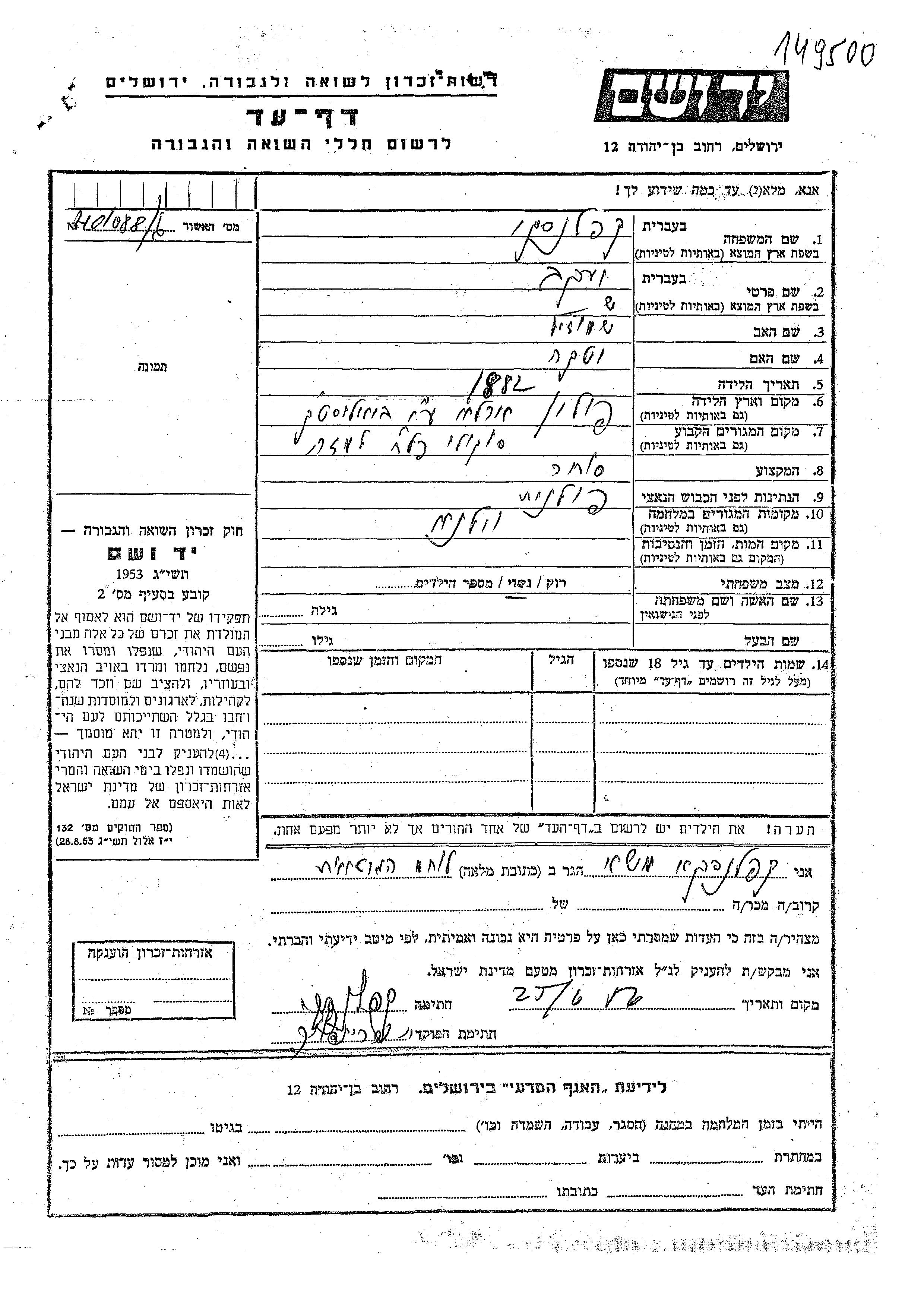 Yad Vashem - Pages of Testimony Names Memorial Collection