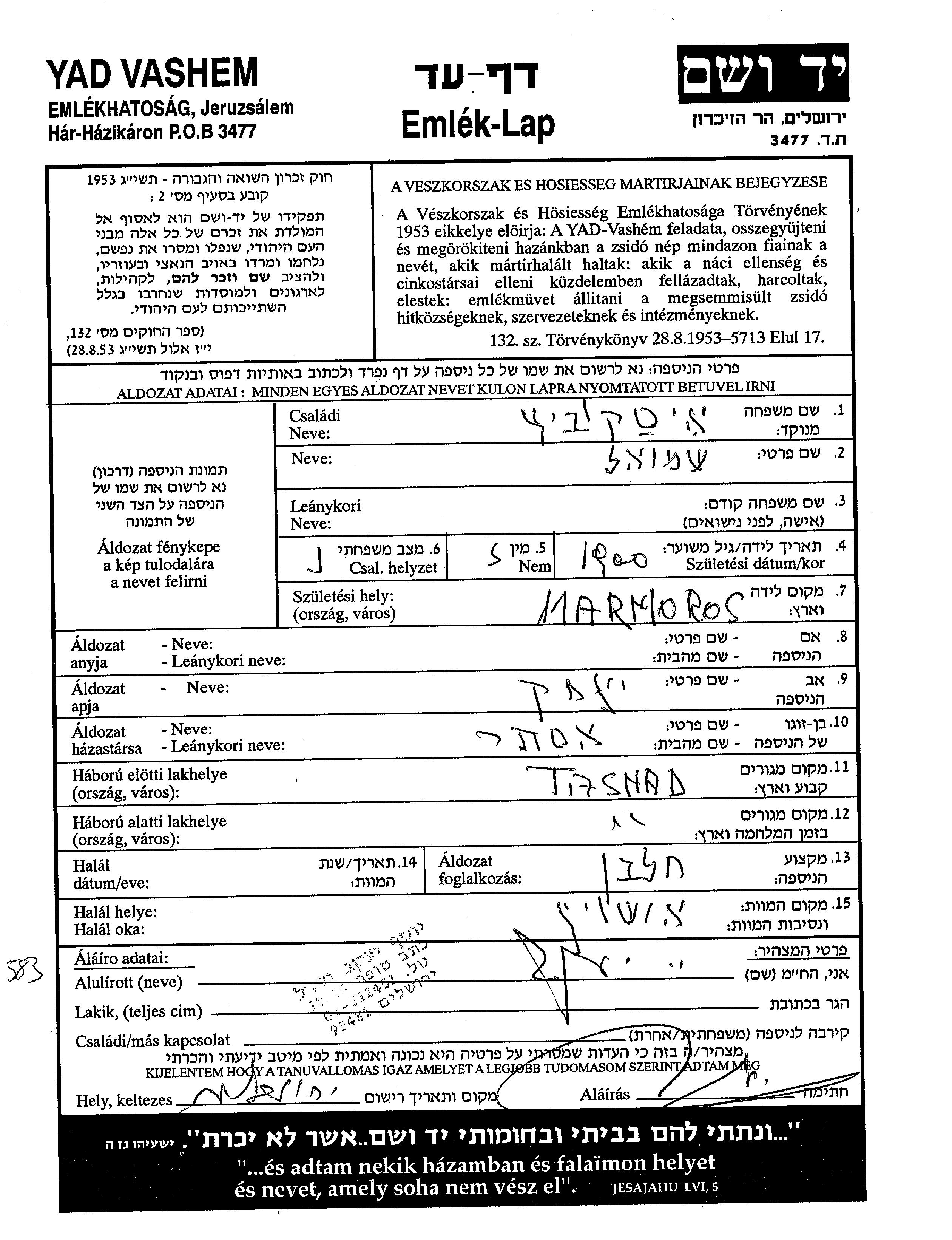 Yad Vashem - Pages of Testimony Names Memorial Collection