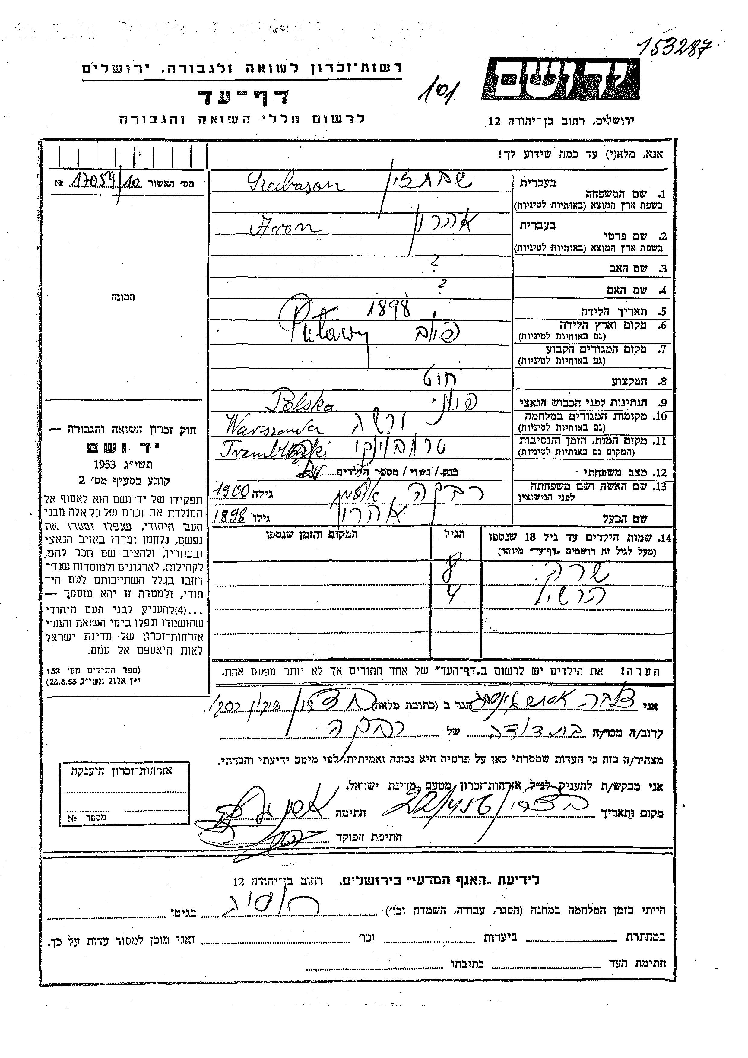 Yad Vashem - Pages of Testimony Names Memorial Collection