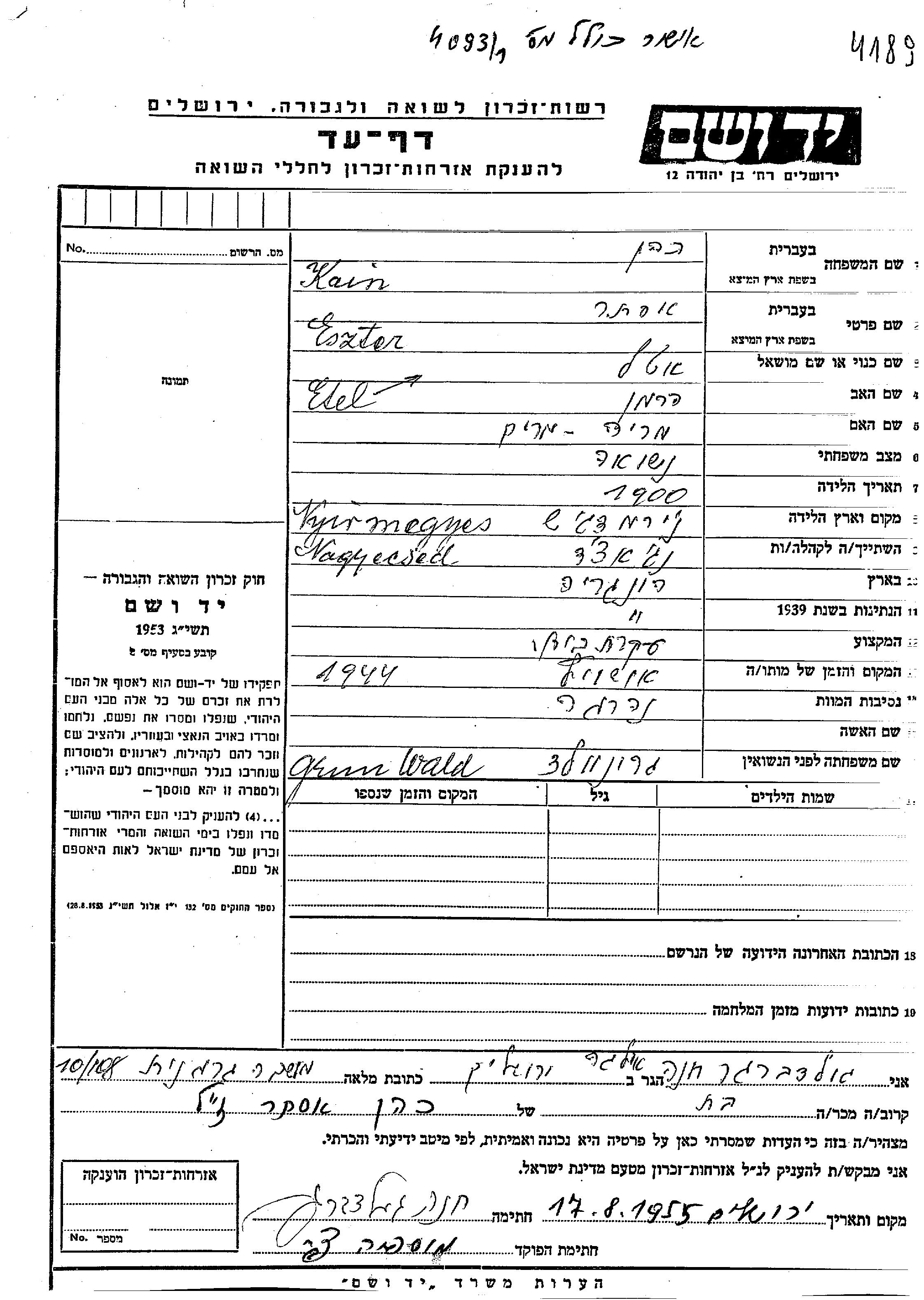 Yad Vashem - Pages of Testimony Names Memorial Collection