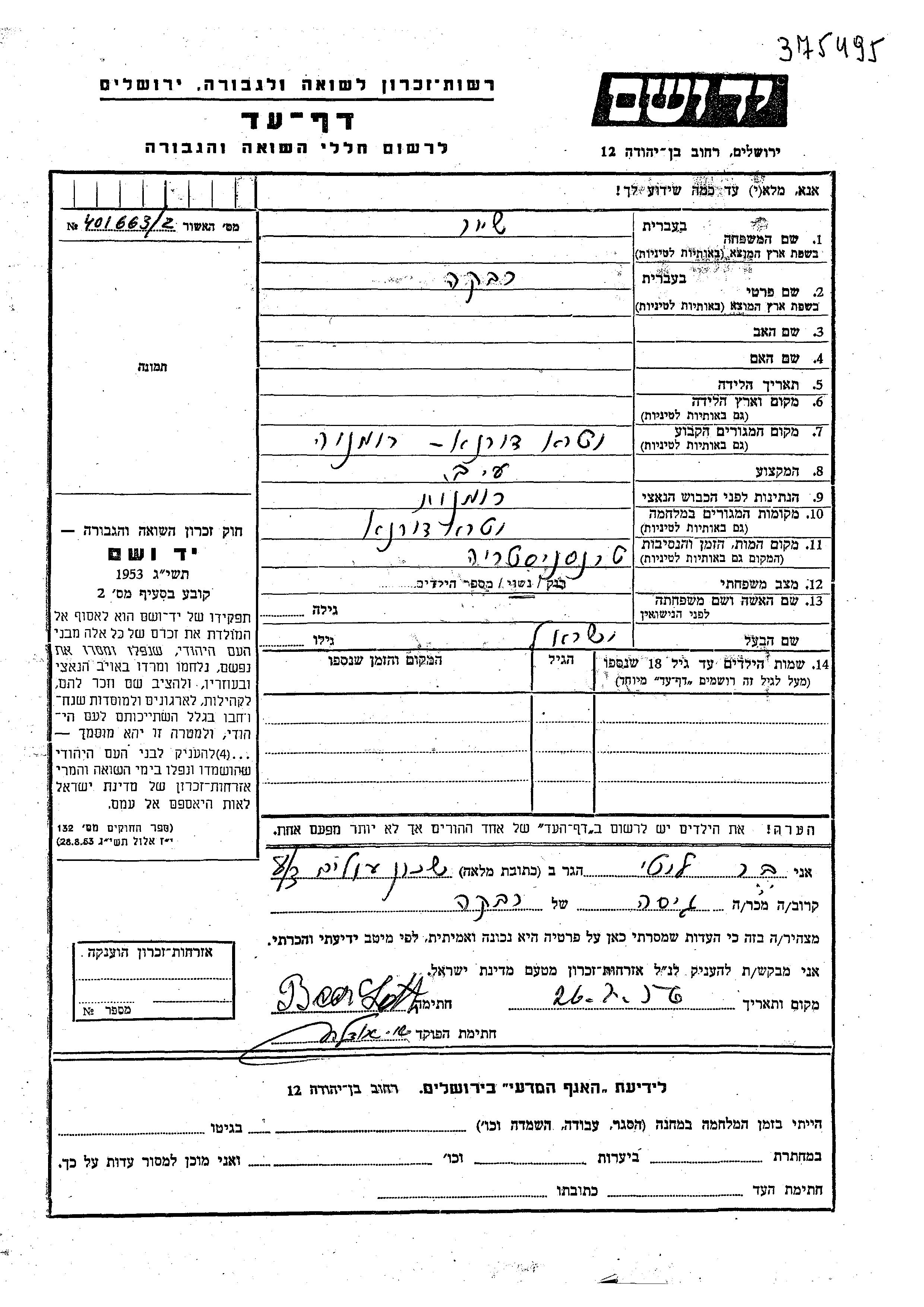 Yad Vashem - Pages of Testimony Names Memorial Collection