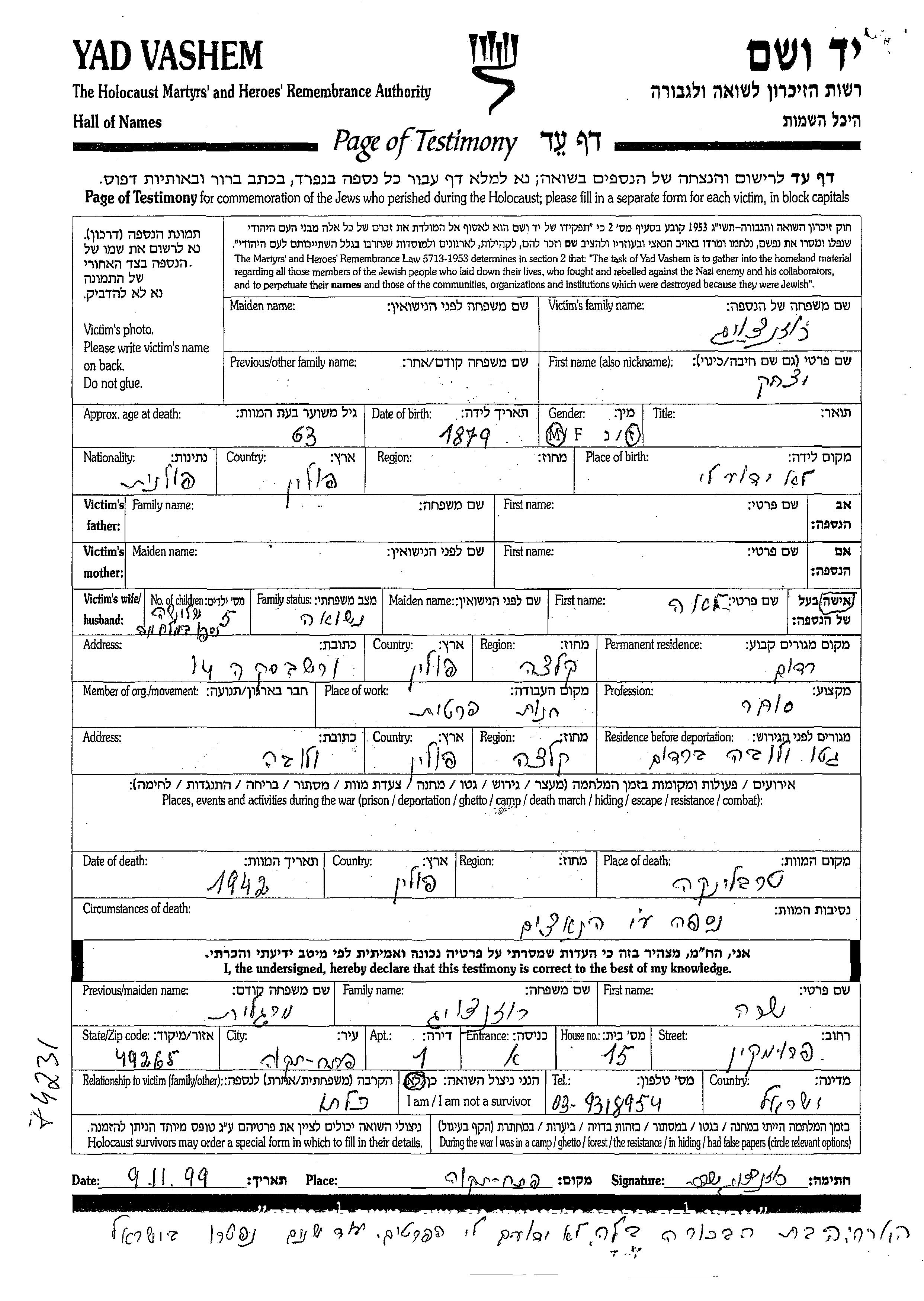 Yad Vashem - Pages of Testimony Names Memorial Collection