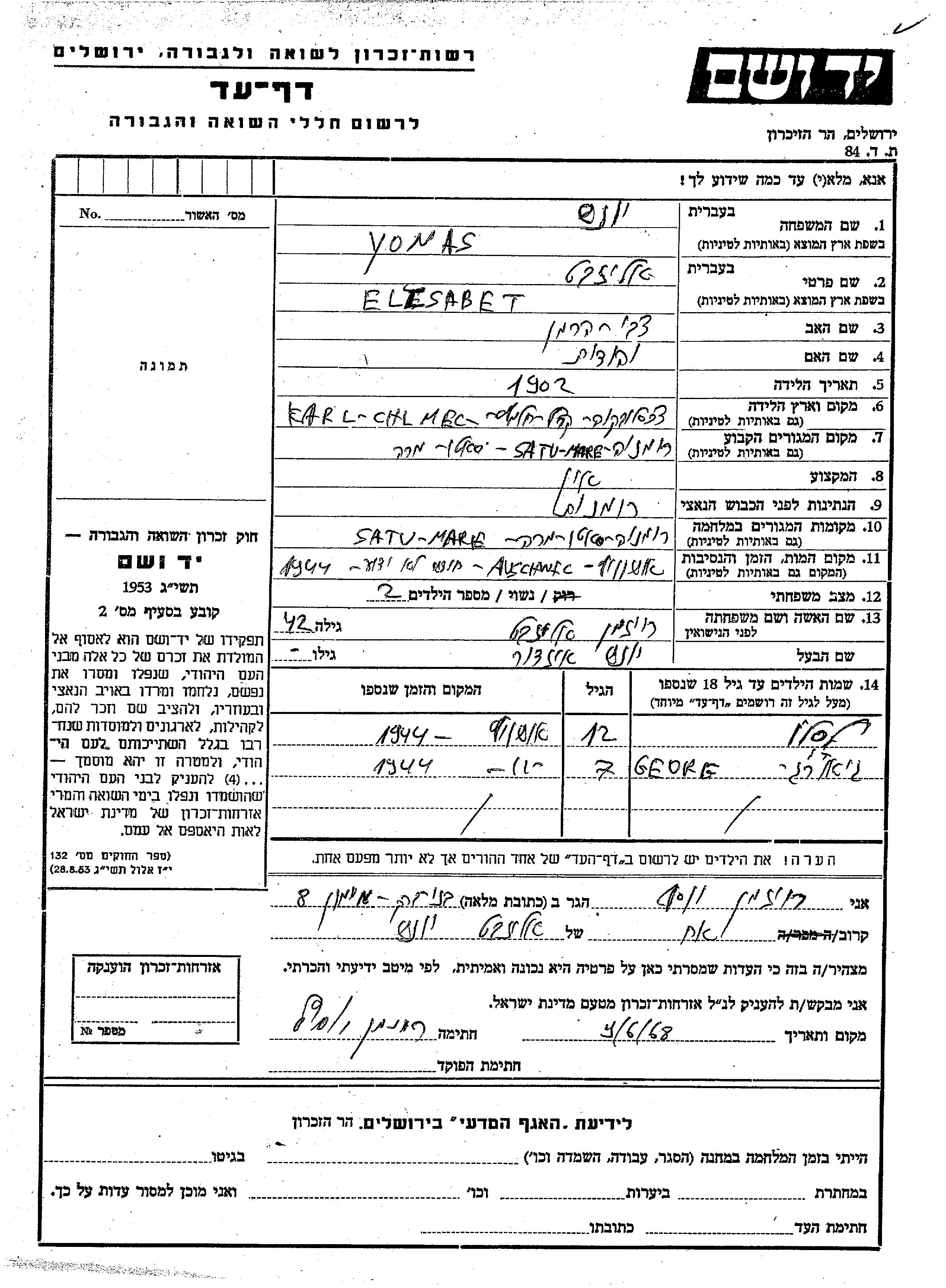 Yonas Georg Satu Mare, Roumanie Feuille de témoignage
