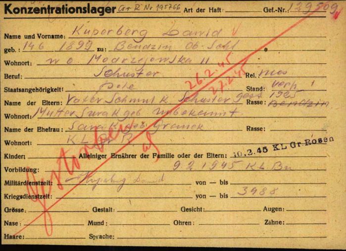 Kuperberg Dawid 1899 Bendzin, Pologne Fichier de ITS