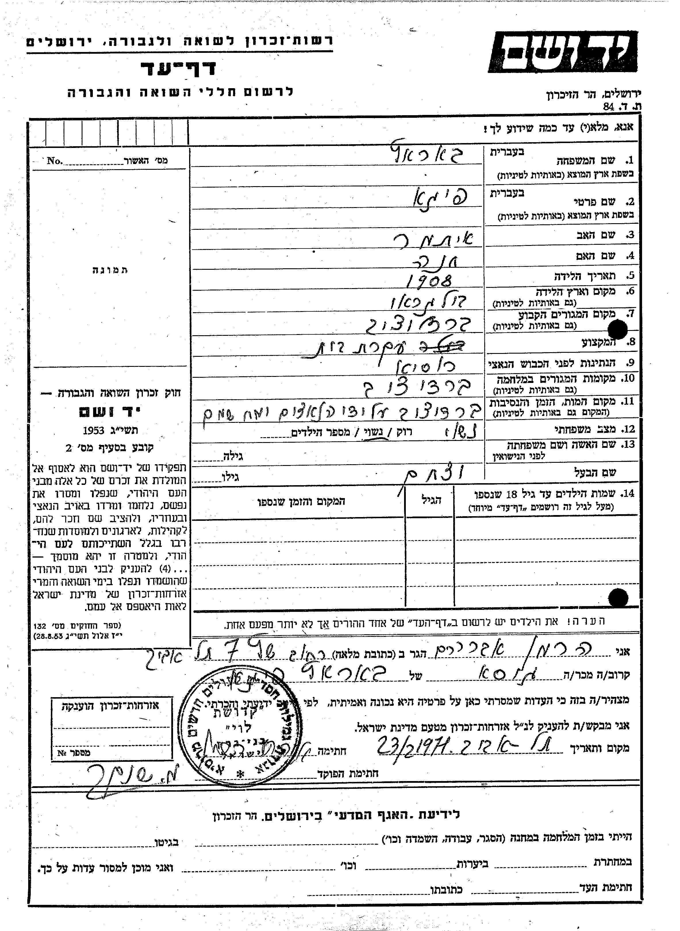 Yad Vashem - Pages of Testimony Names Memorial Collection