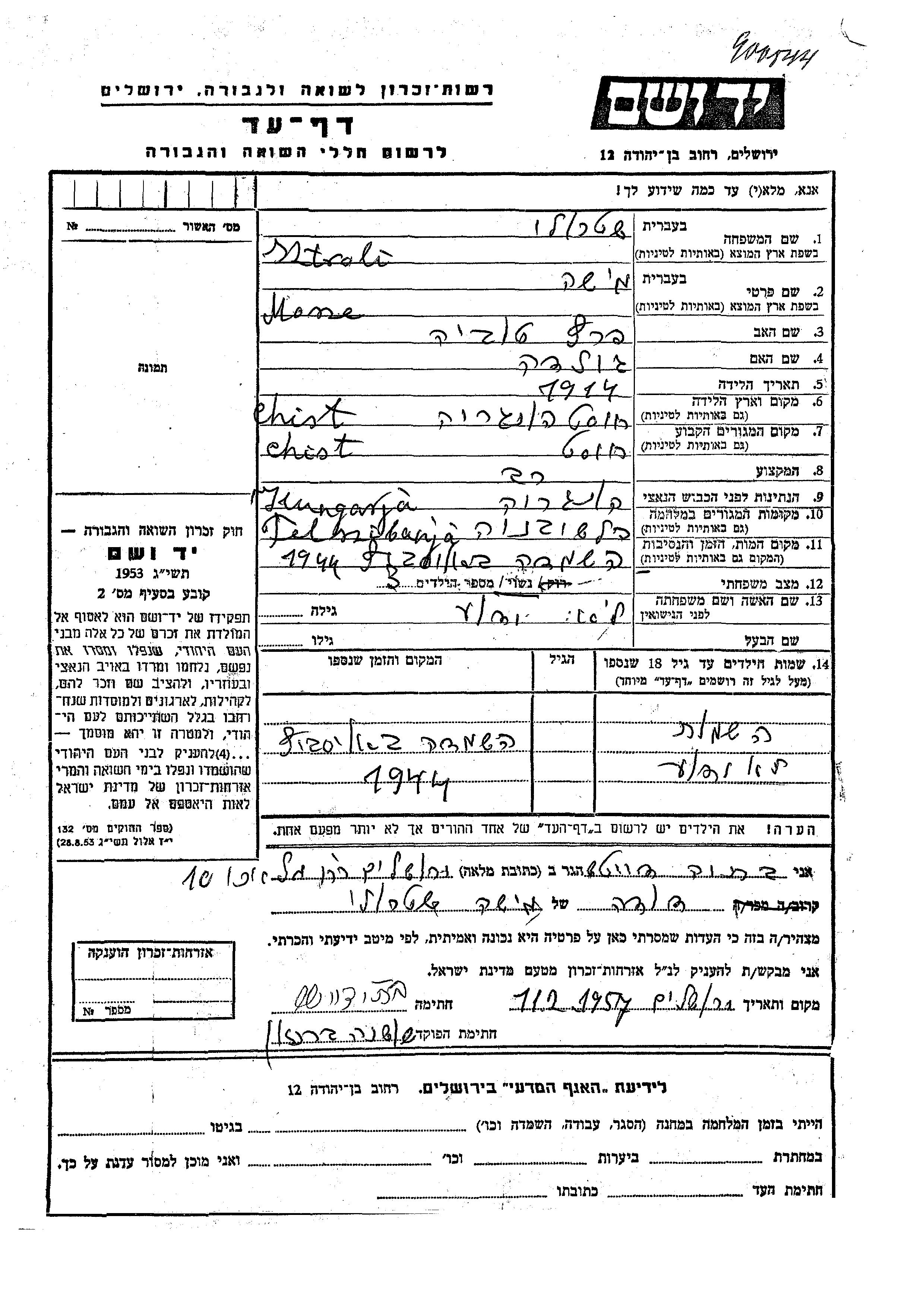 Yad Vashem - Pages of Testimony Names Memorial Collection