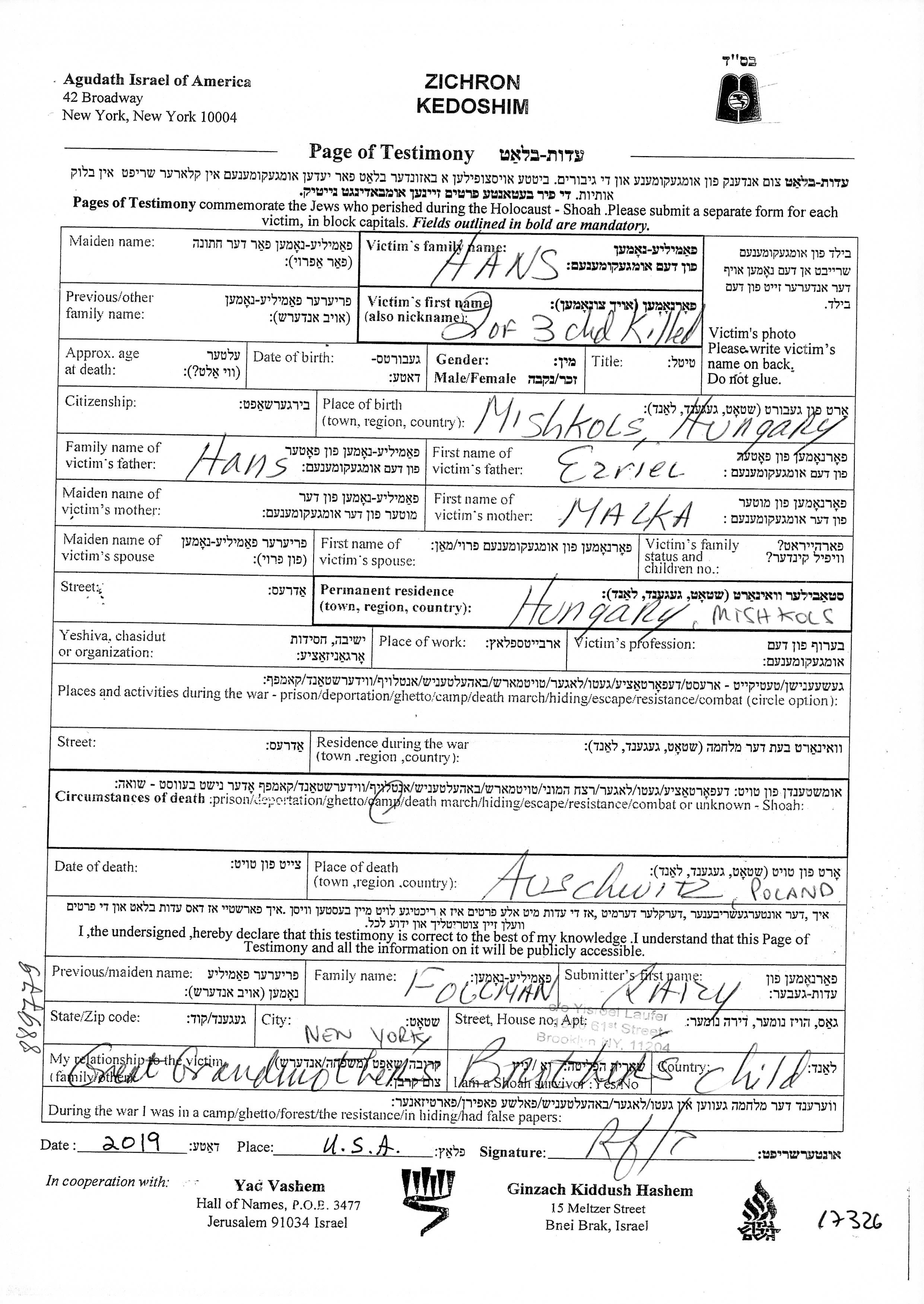 Yad Vashem - Pages of Testimony Names Memorial Collection