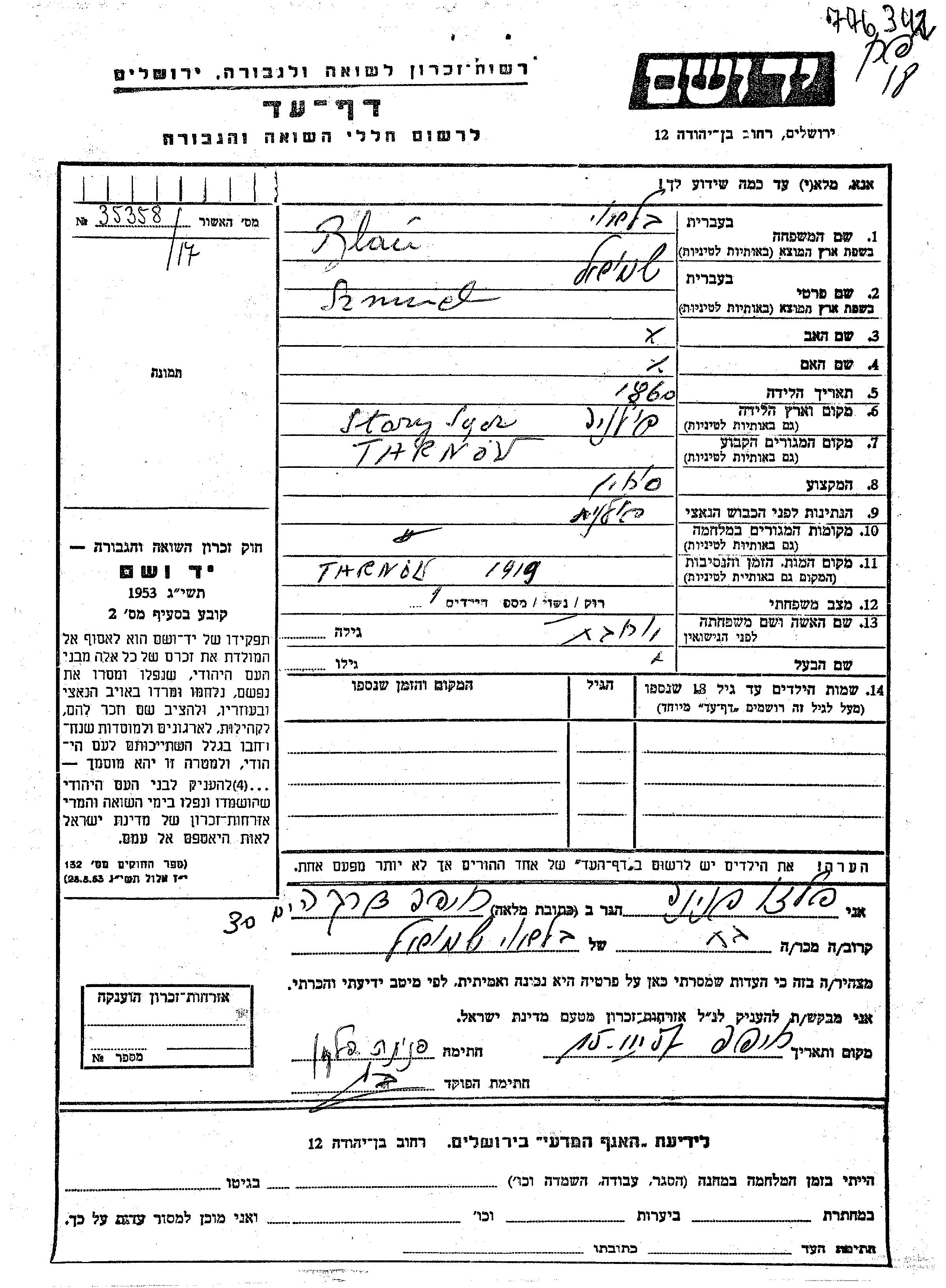 Yad Vashem - Pages of Testimony Names Memorial Collection