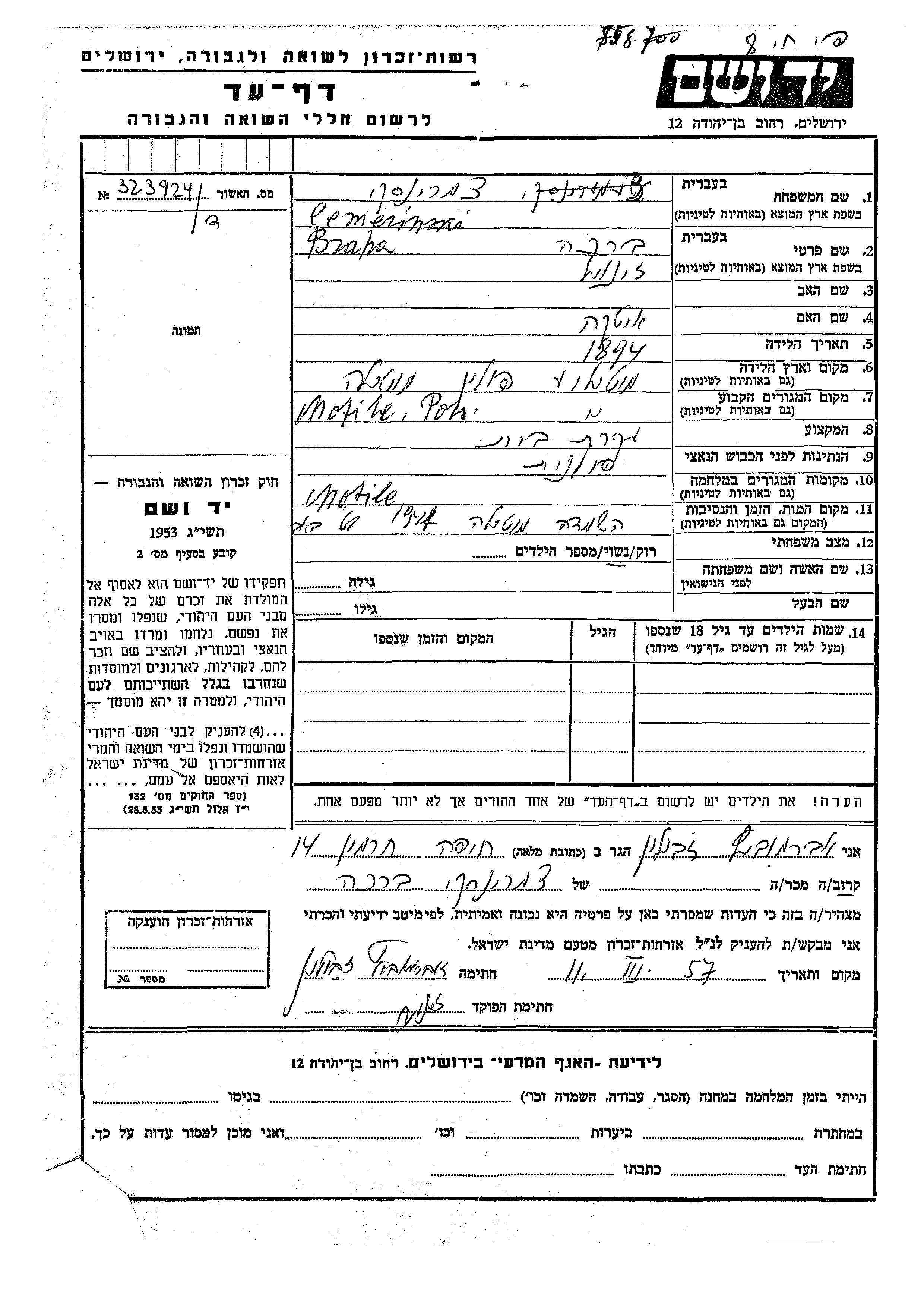 Yad Vashem - Pages of Testimony Names Memorial Collection