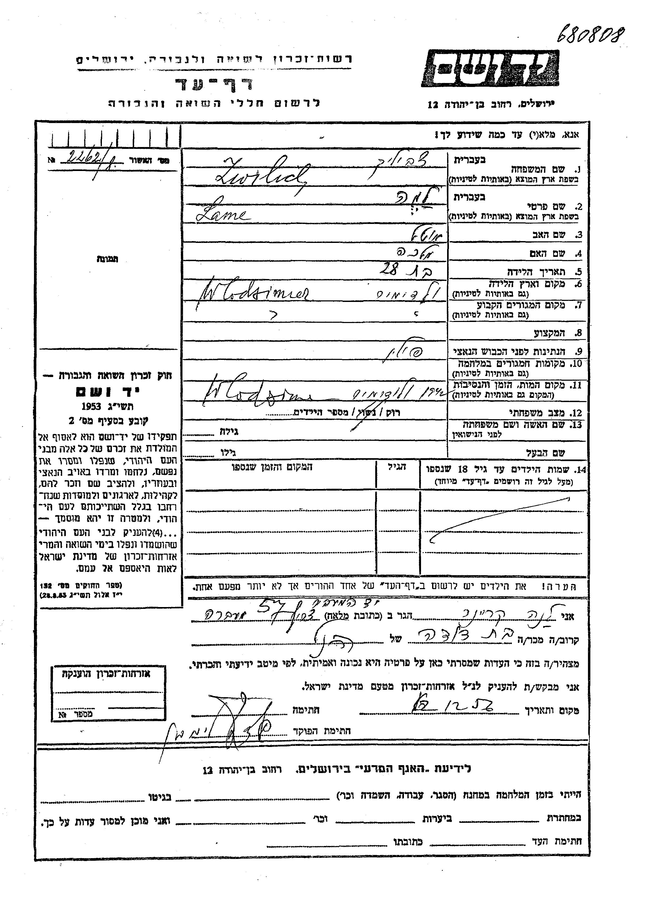 Yad Vashem - Pages of Testimony Names Memorial Collection