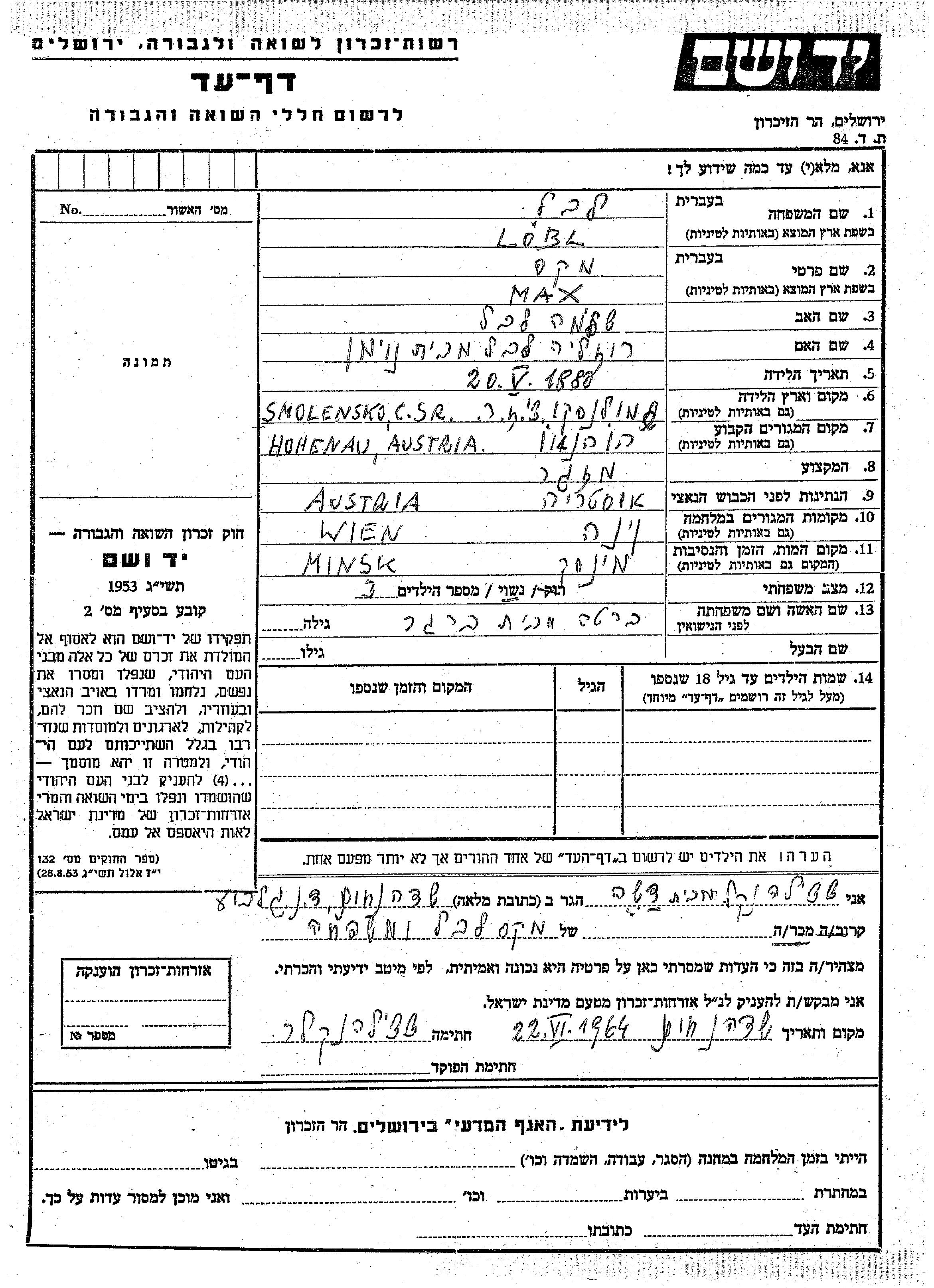 Max a été assassiné pendant la Shoah. Lieu de la mort: Minsk, Bélorussie (URSS).
