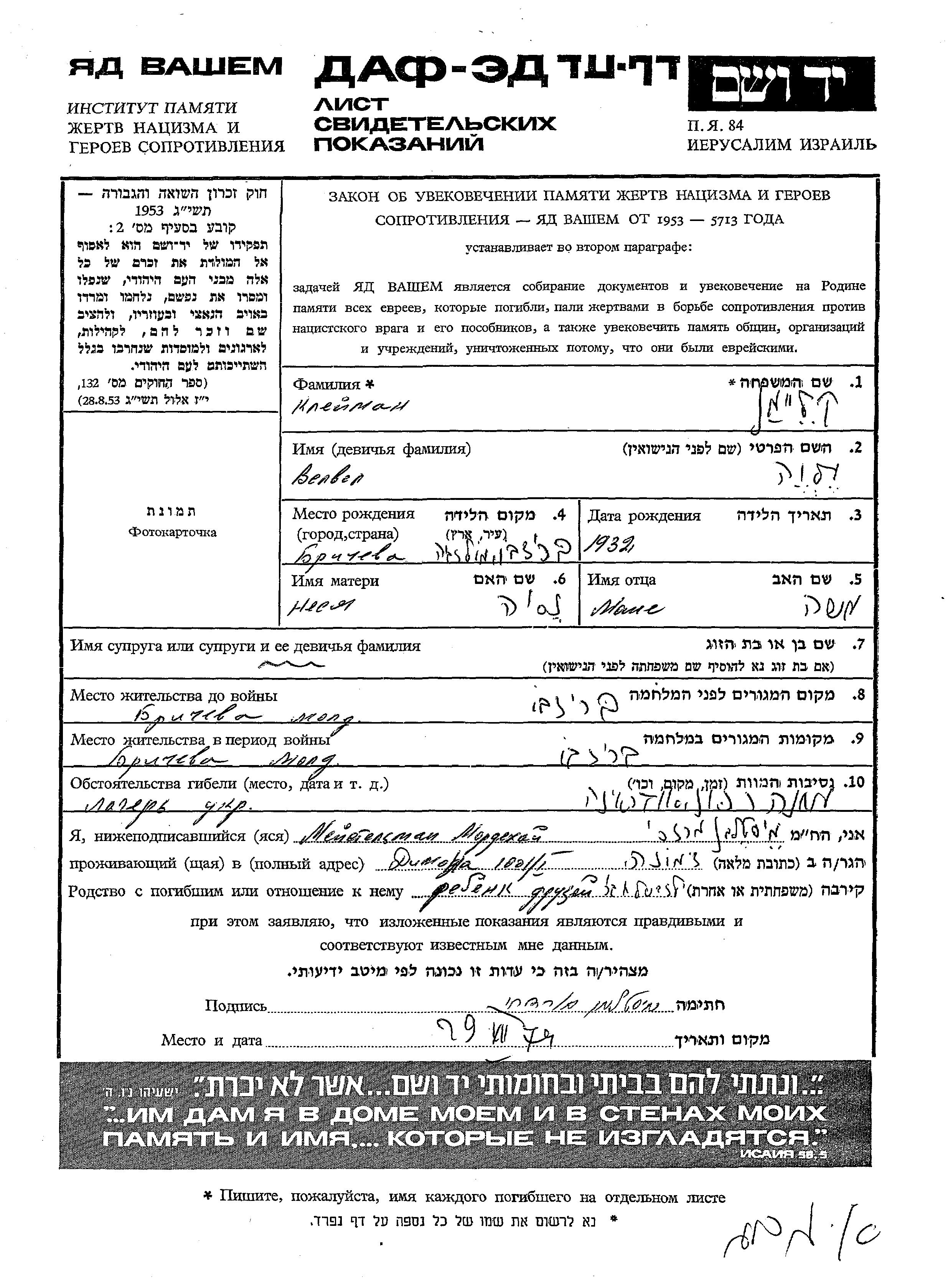 Yad Vashem - Pages of Testimony Names Memorial Collection