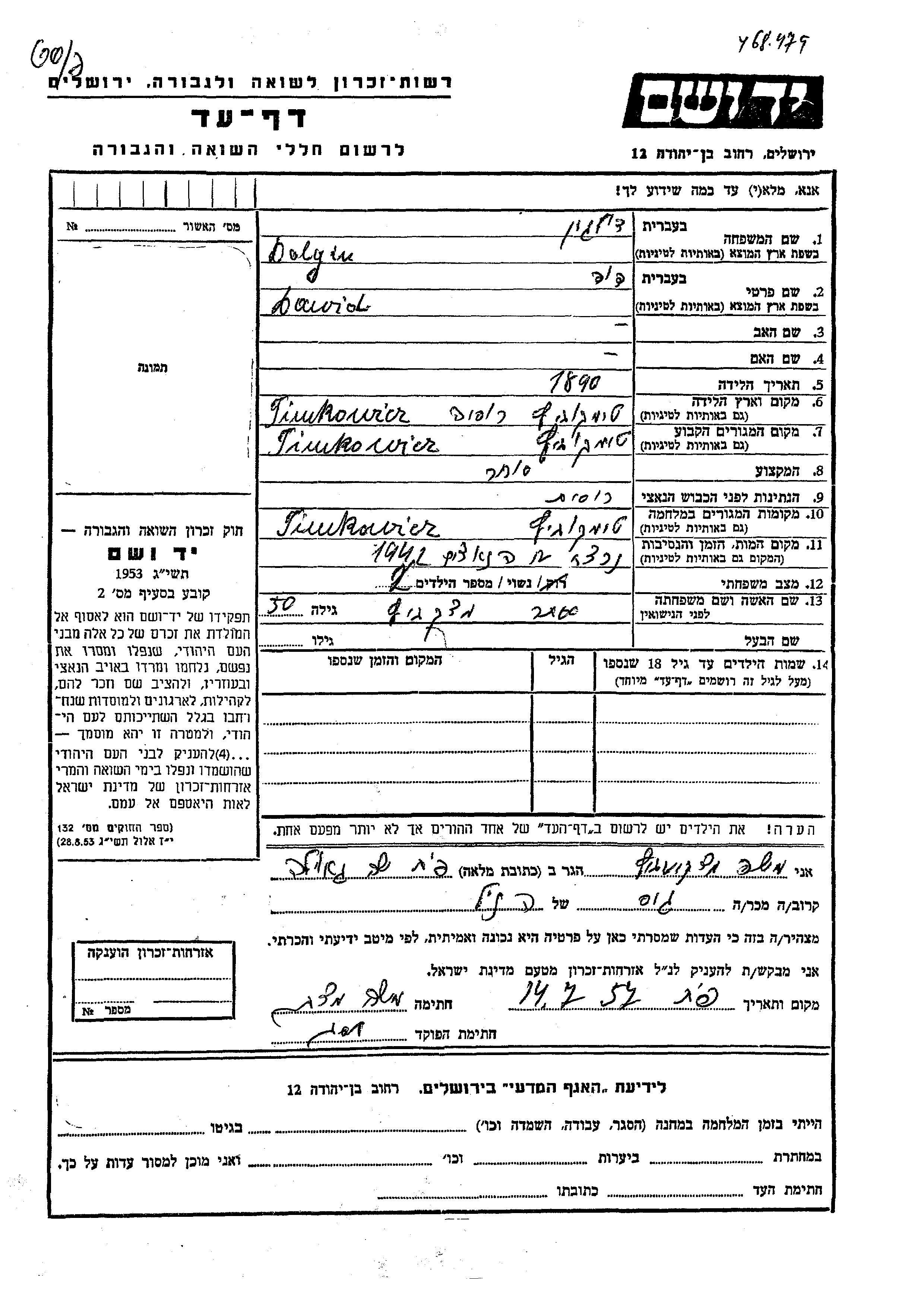 Dolgin Dawid 1890 Timkovichi, Bélorussie (URSS) Feuille de témoignage