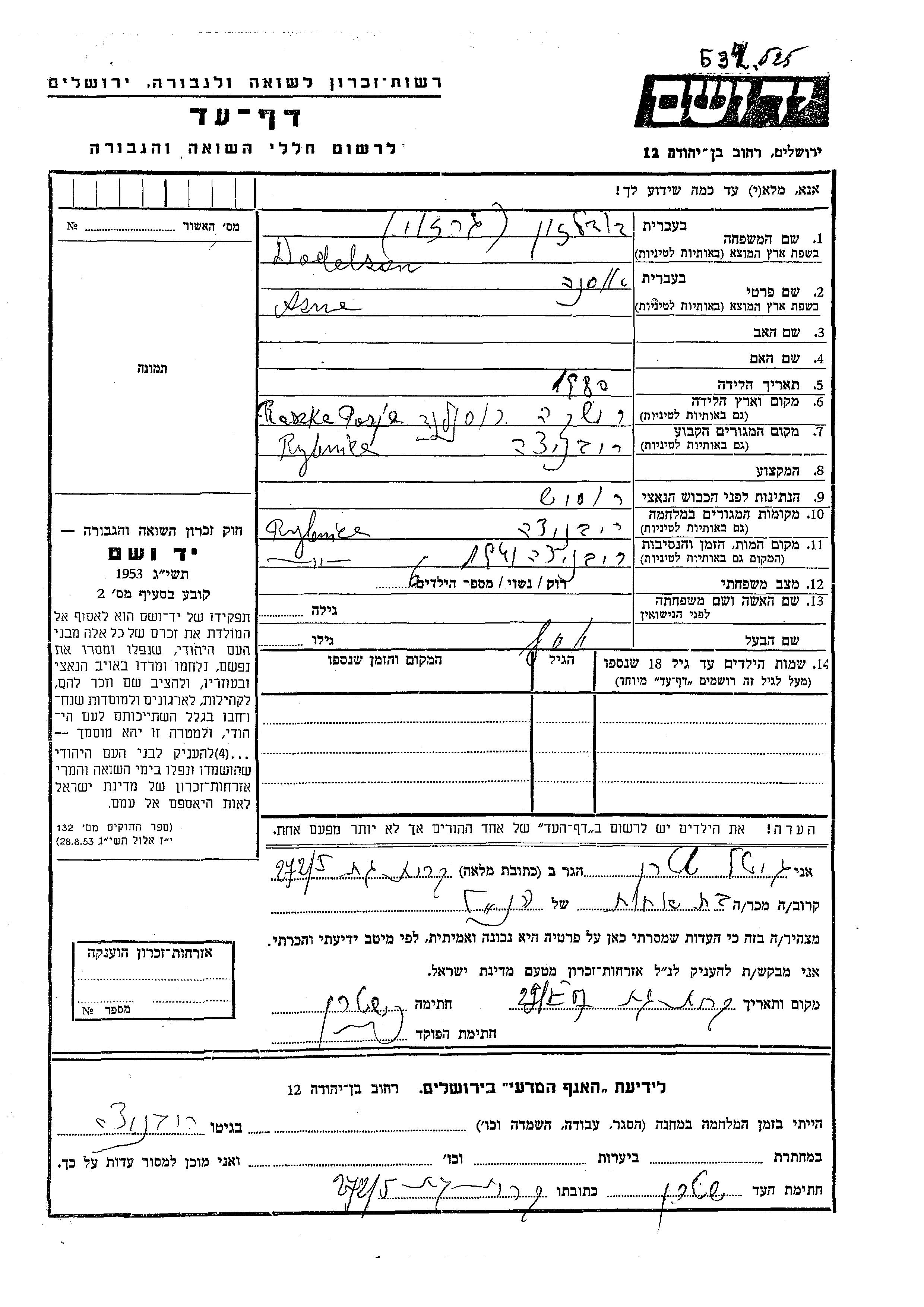 Yad Vashem - Pages of Testimony Names Memorial Collection