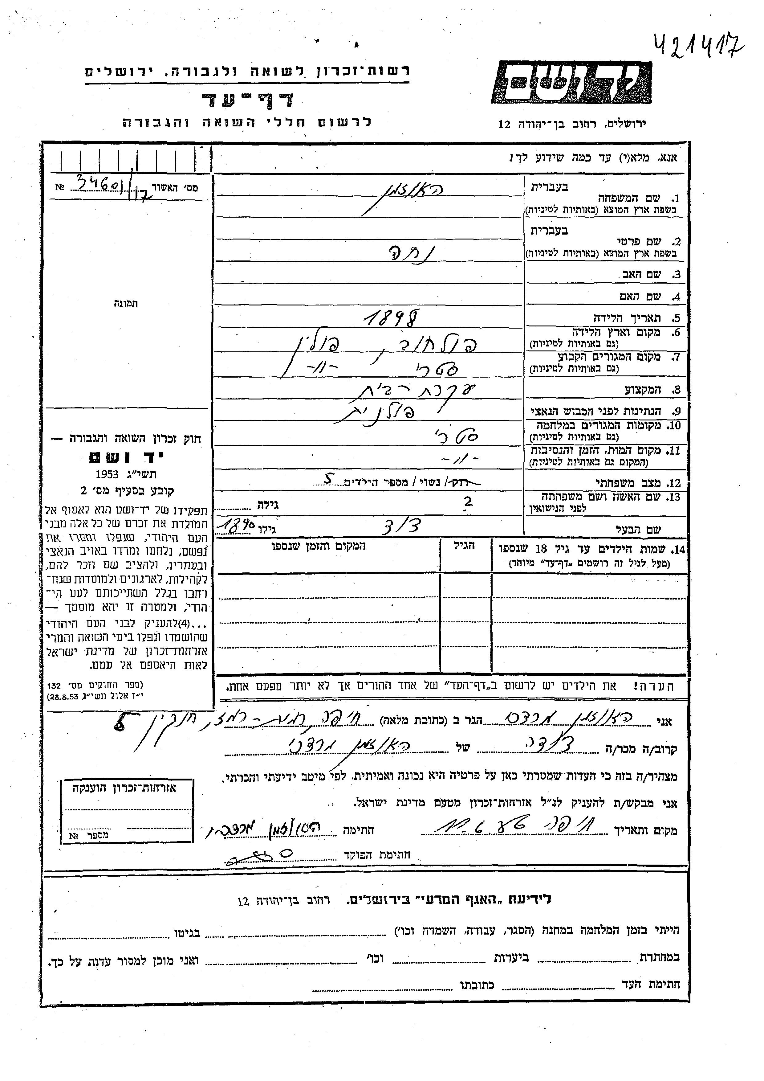 Yad Vashem - Pages of Testimony Names Memorial Collection