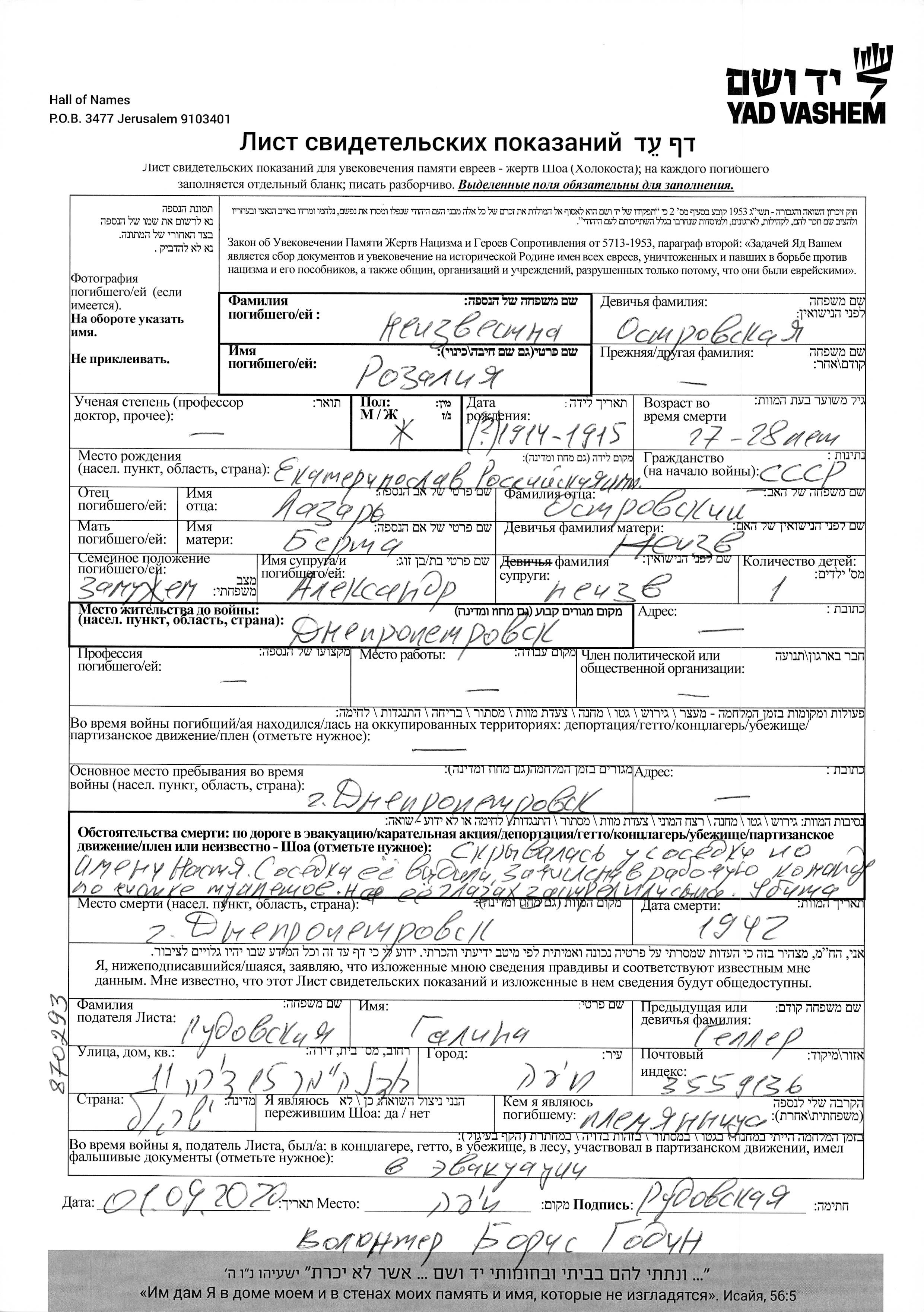 Yad Vashem - Pages of Testimony Names Memorial Collection