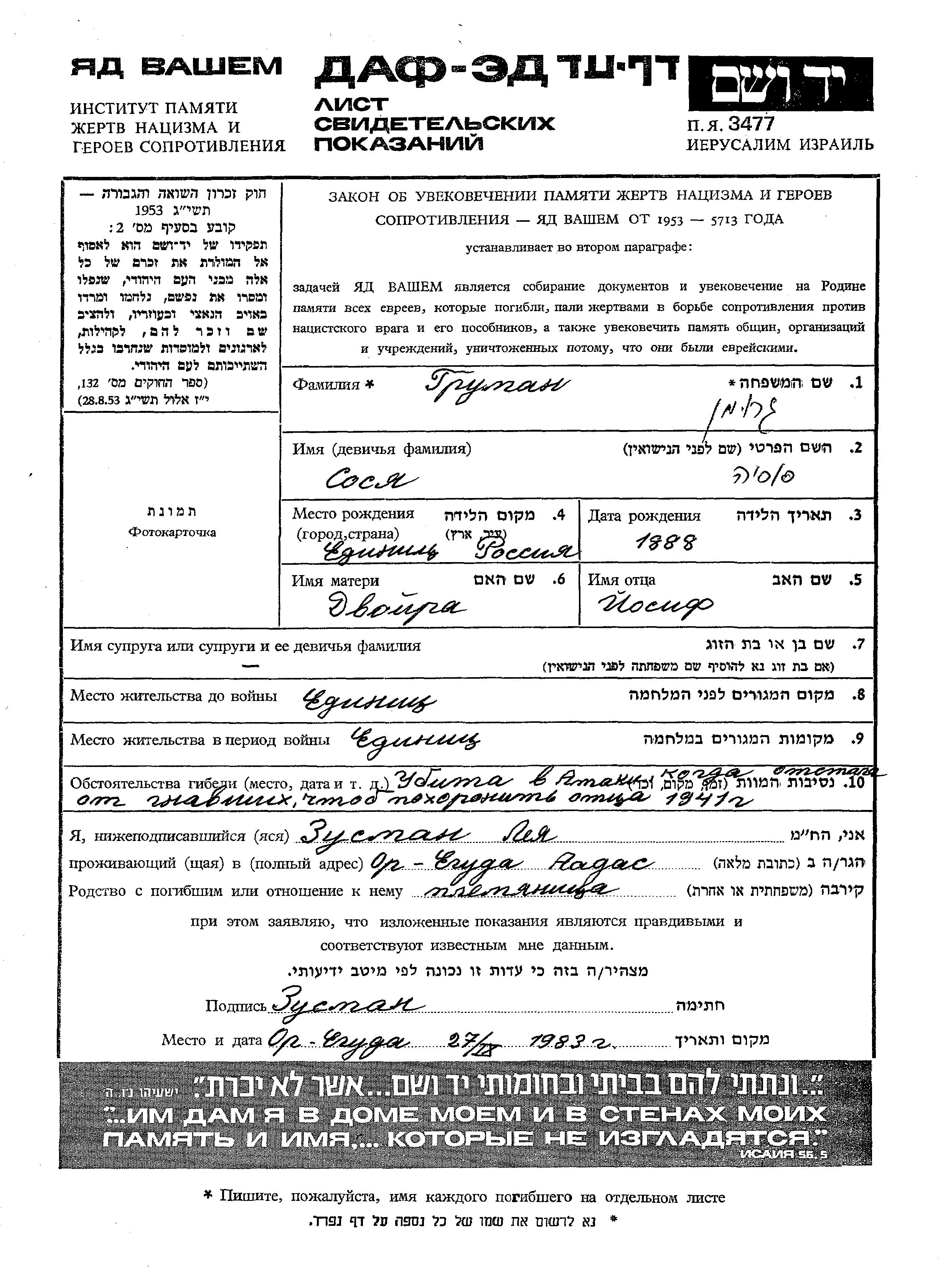 Yad Vashem - Pages of Testimony Names Memorial Collection