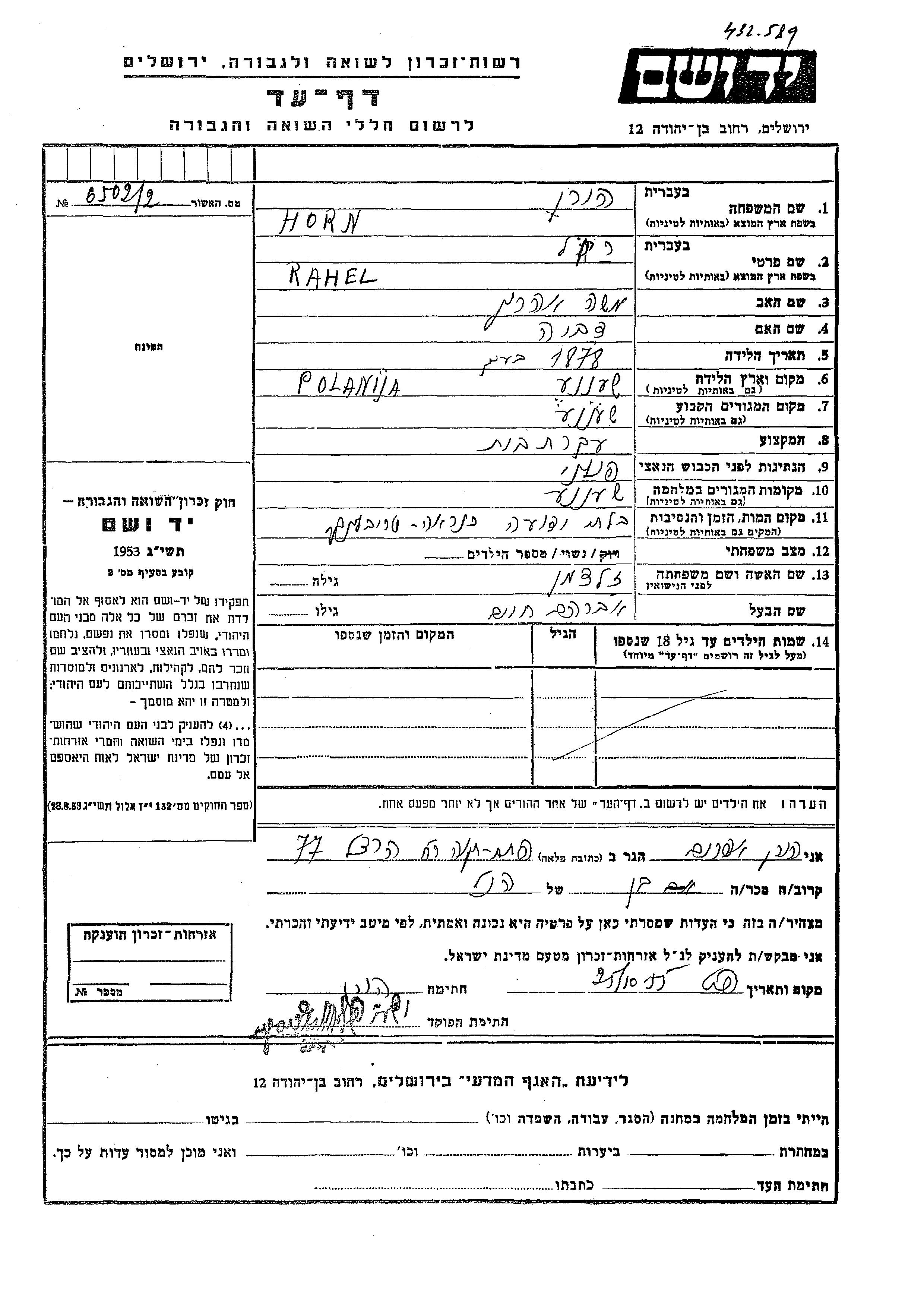 Yad Vashem - Pages of Testimony Names Memorial Collection