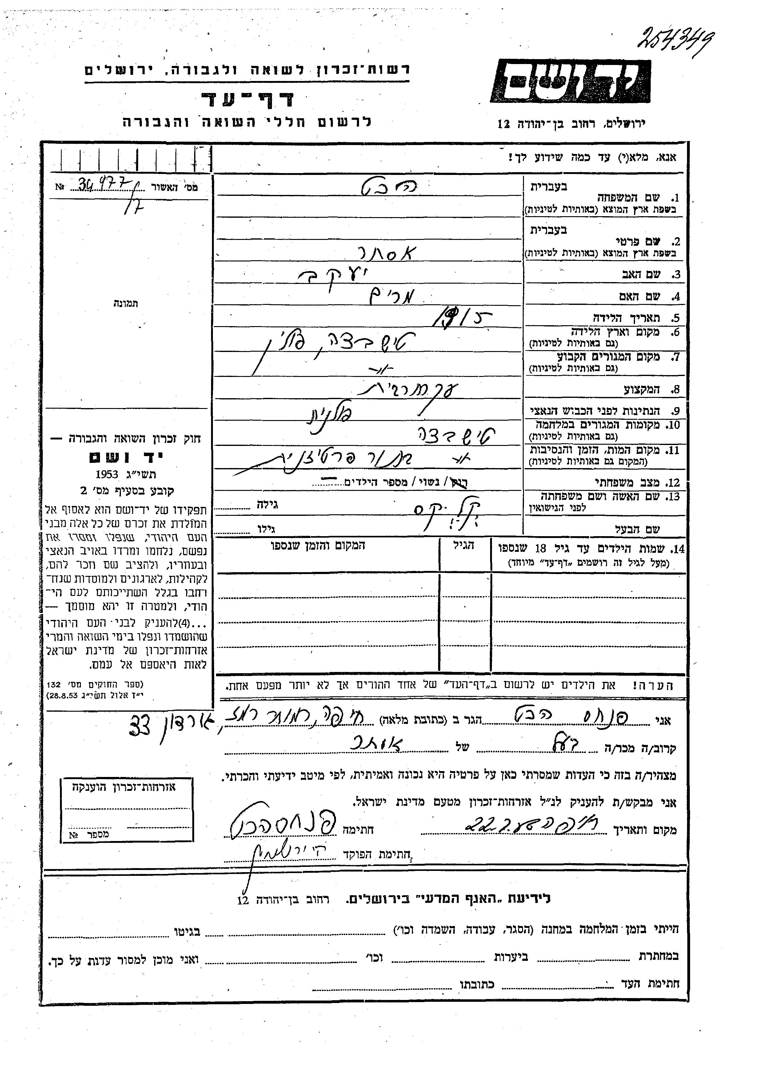 Yad Vashem - Pages of Testimony Names Memorial Collection