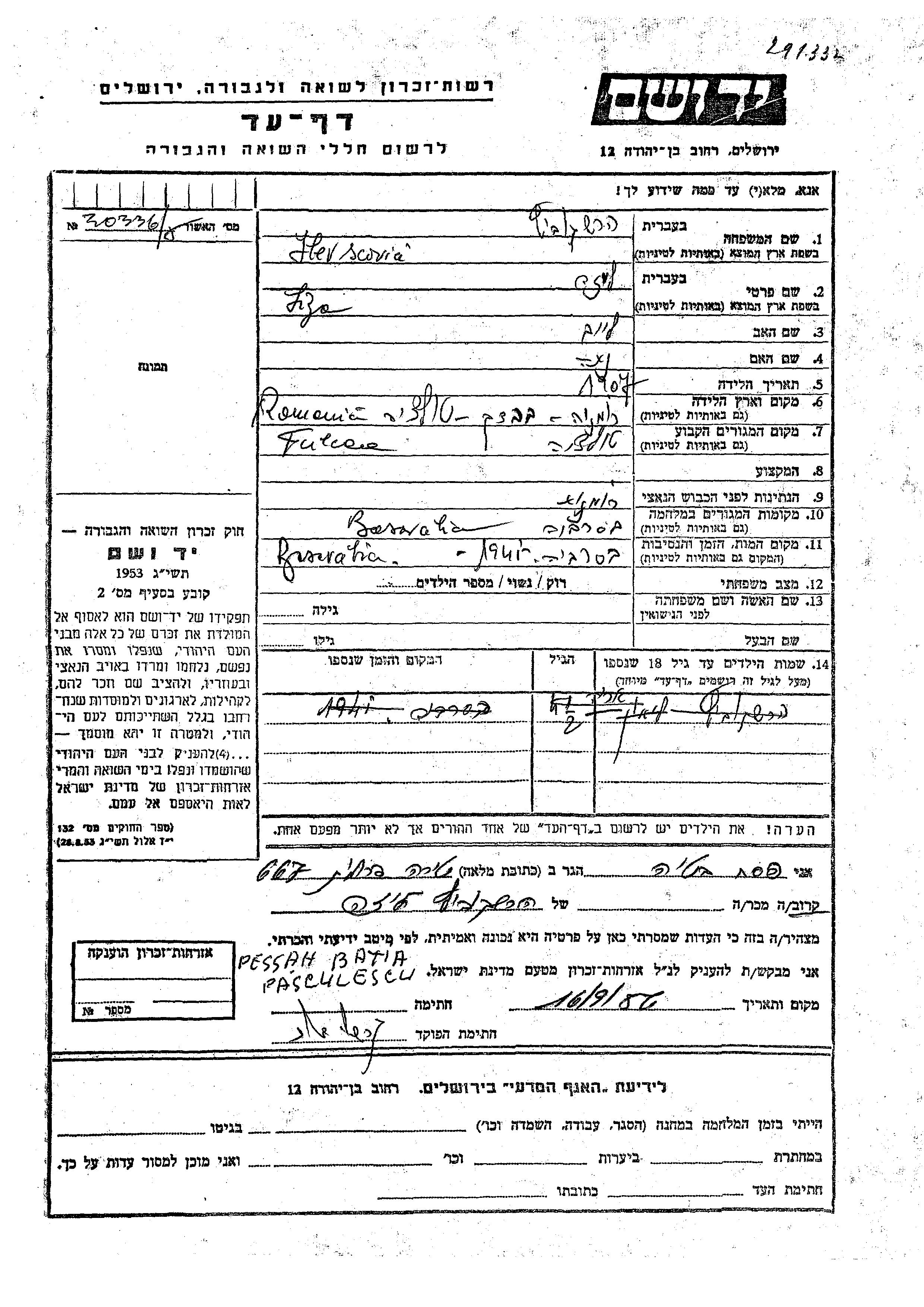 Yad Vashem - Pages of Testimony Names Memorial Collection