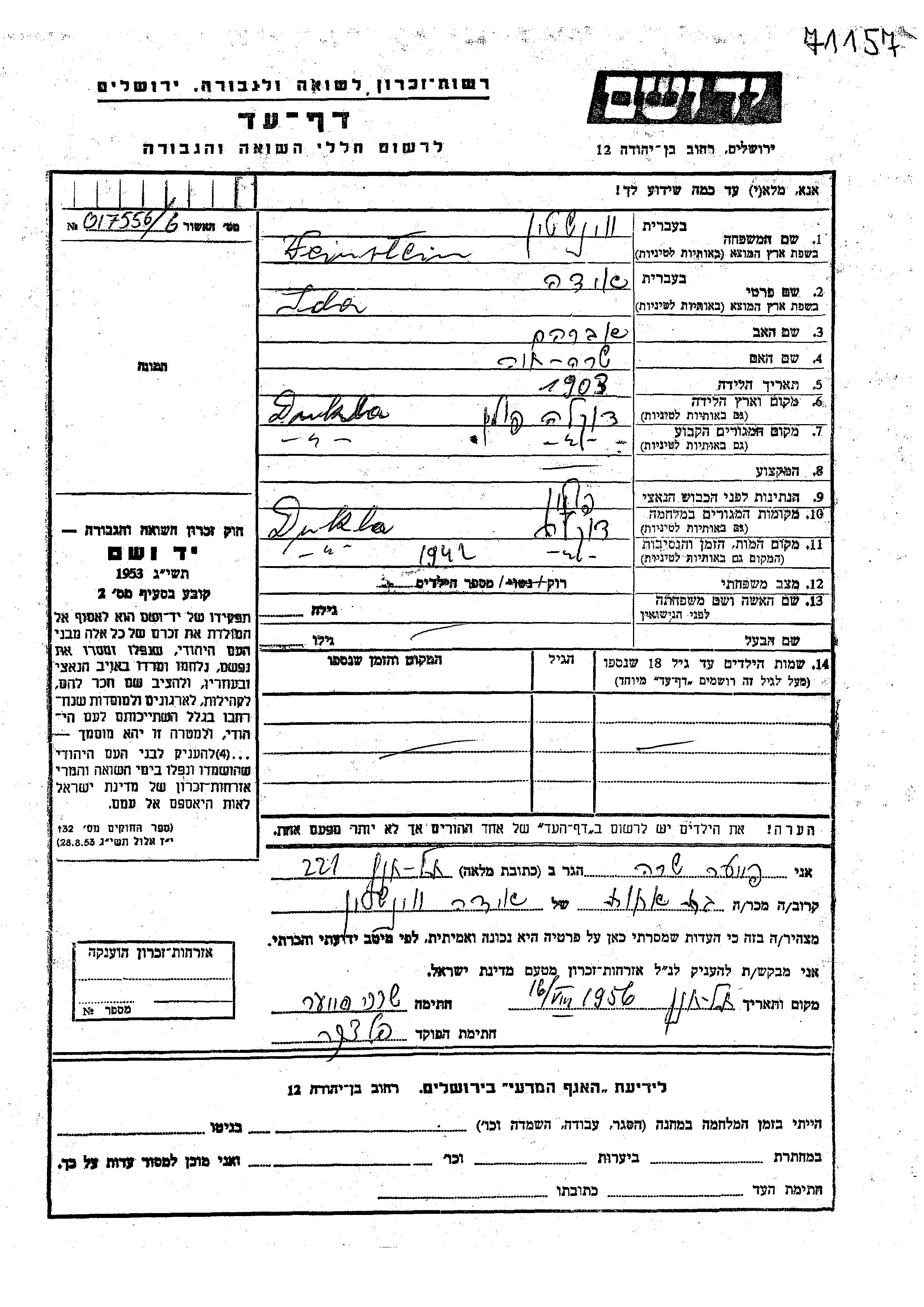Yad Vashem - Pages of Testimony Names Memorial Collection
