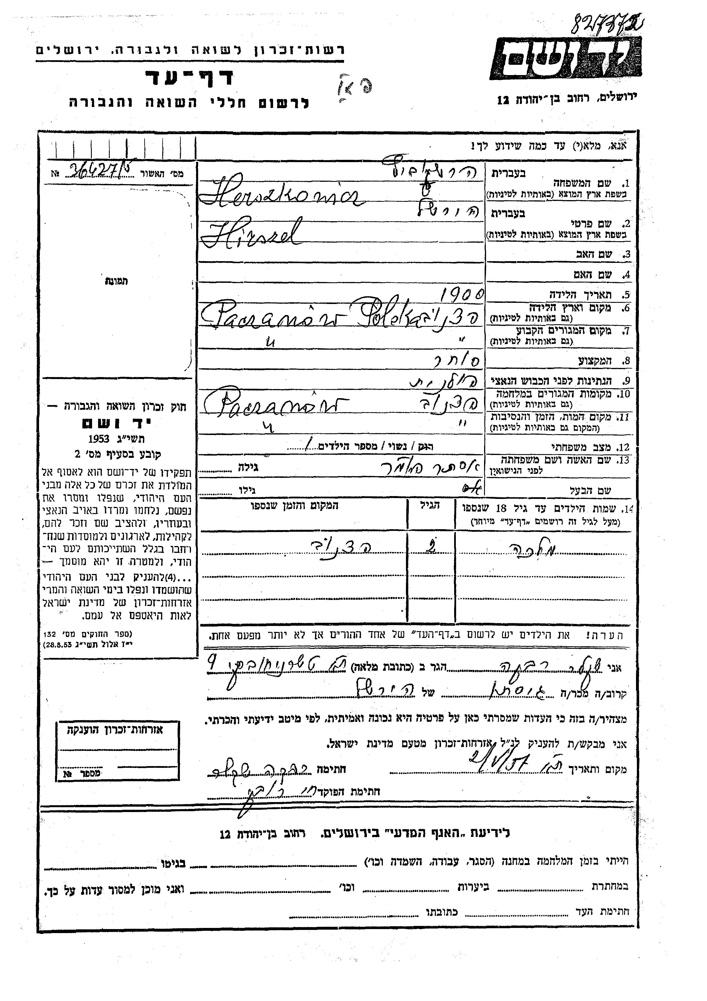 Yad Vashem - Pages of Testimony Names Memorial Collection