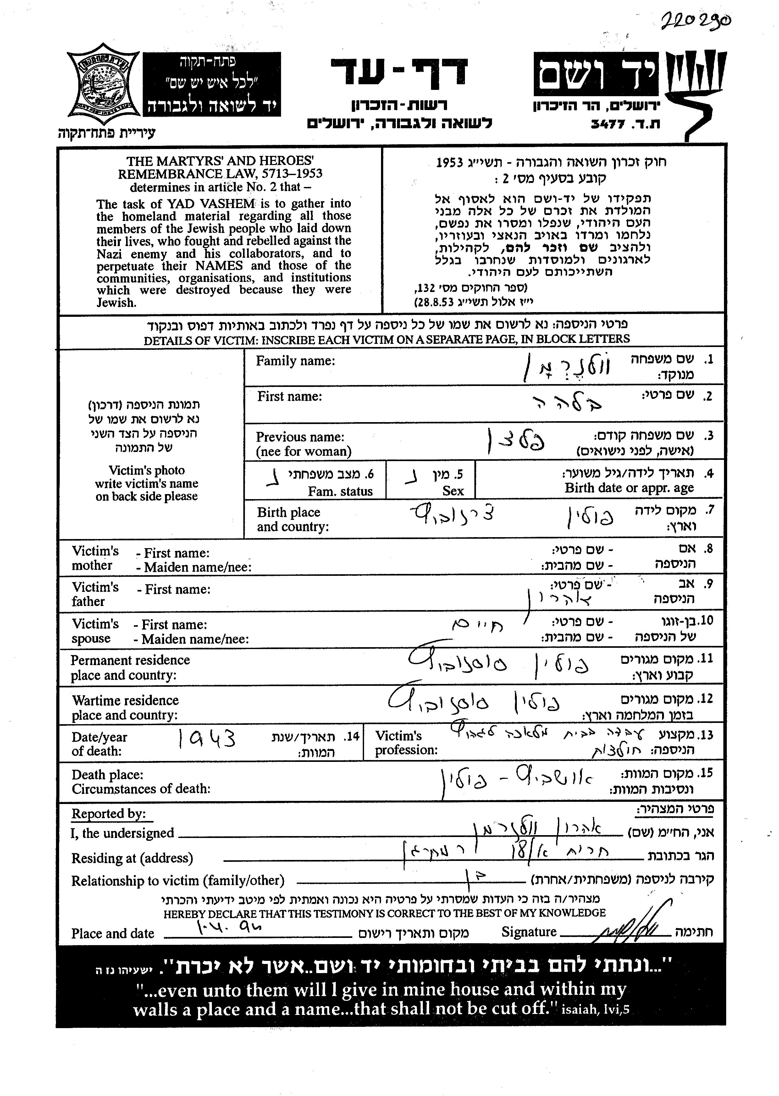 Yad Vashem - Pages of Testimony Names Memorial Collection