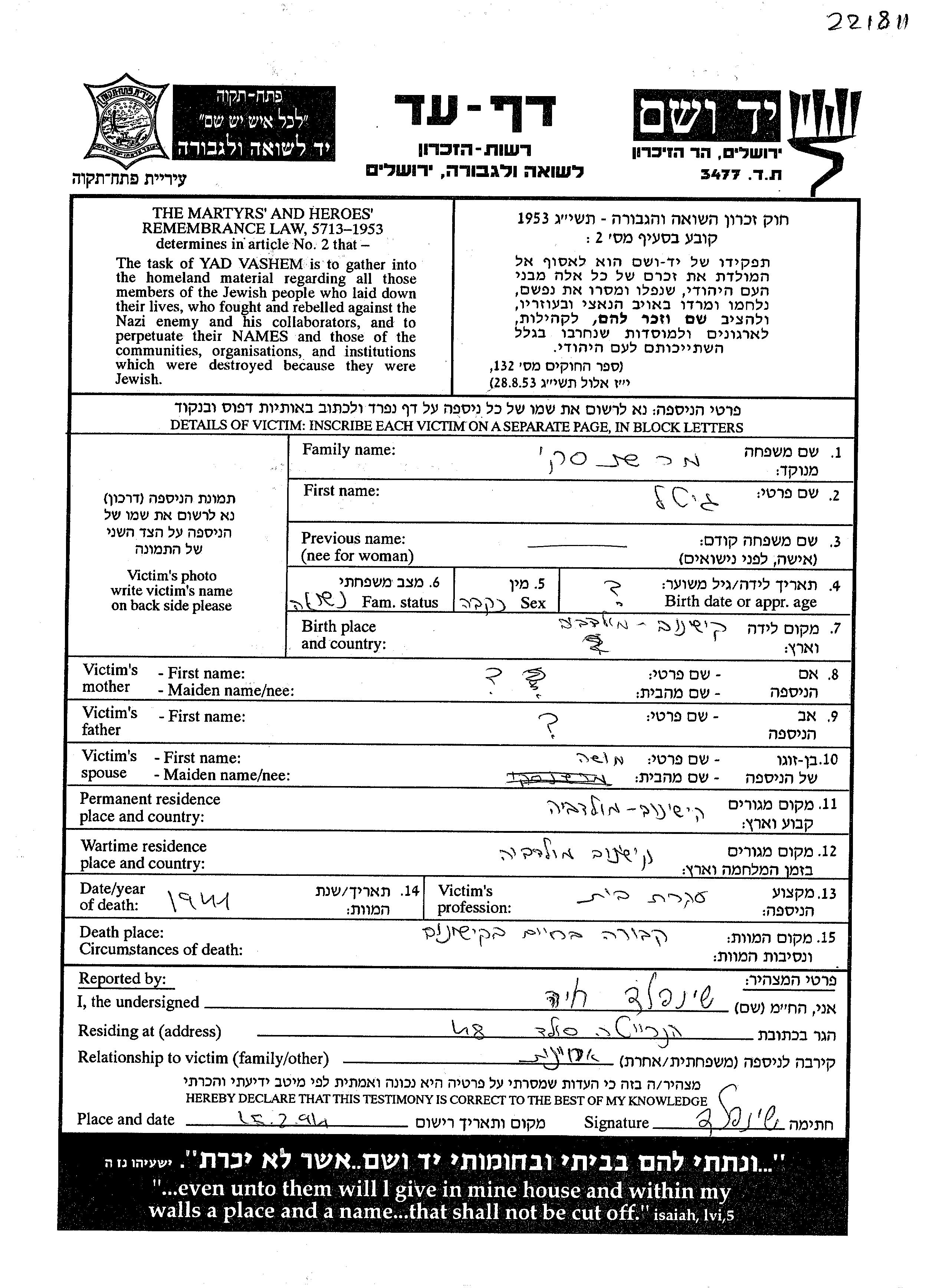Yad Vashem - Pages of Testimony Names Memorial Collection