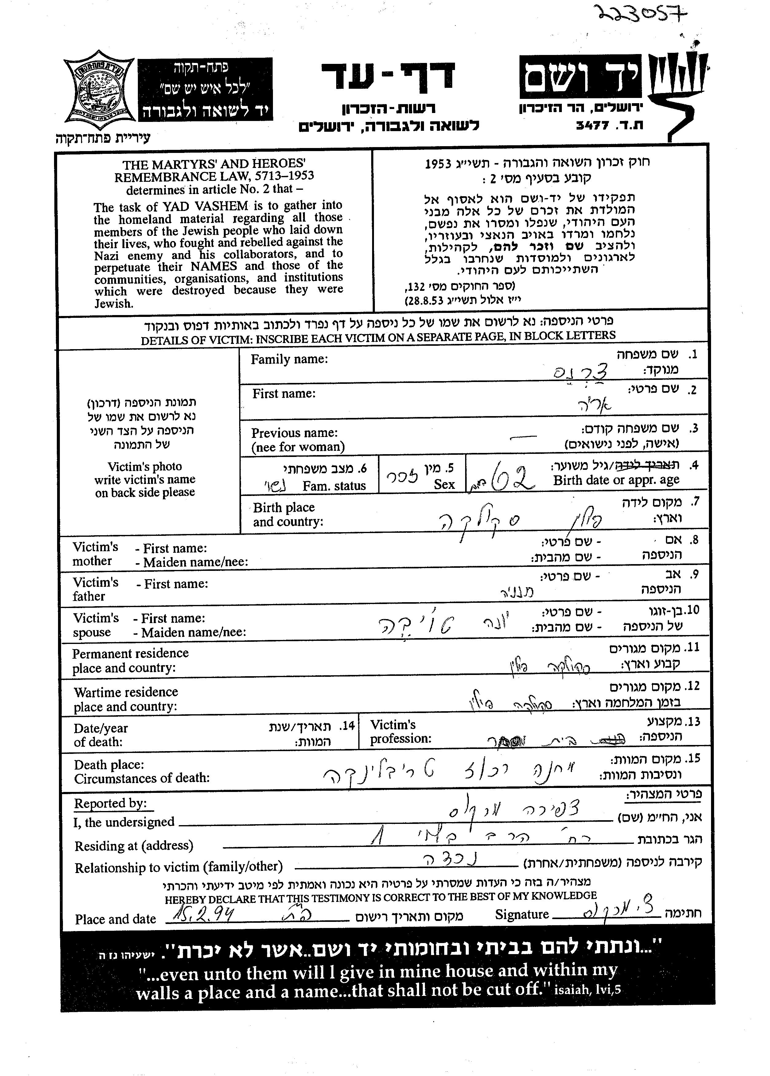 Yad Vashem - Pages of Testimony Names Memorial Collection