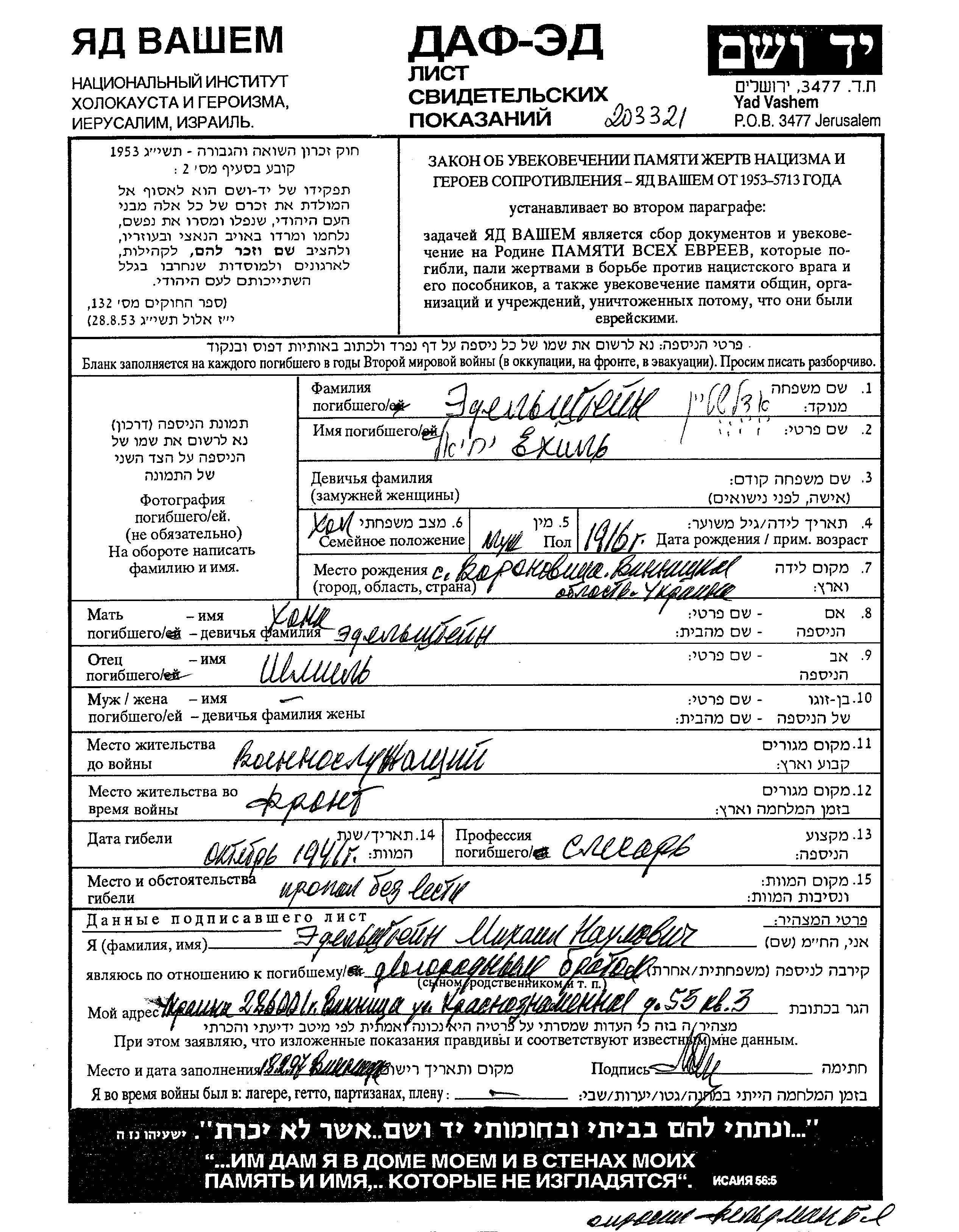 Yad Vashem - Pages of Testimony Names Memorial Collection