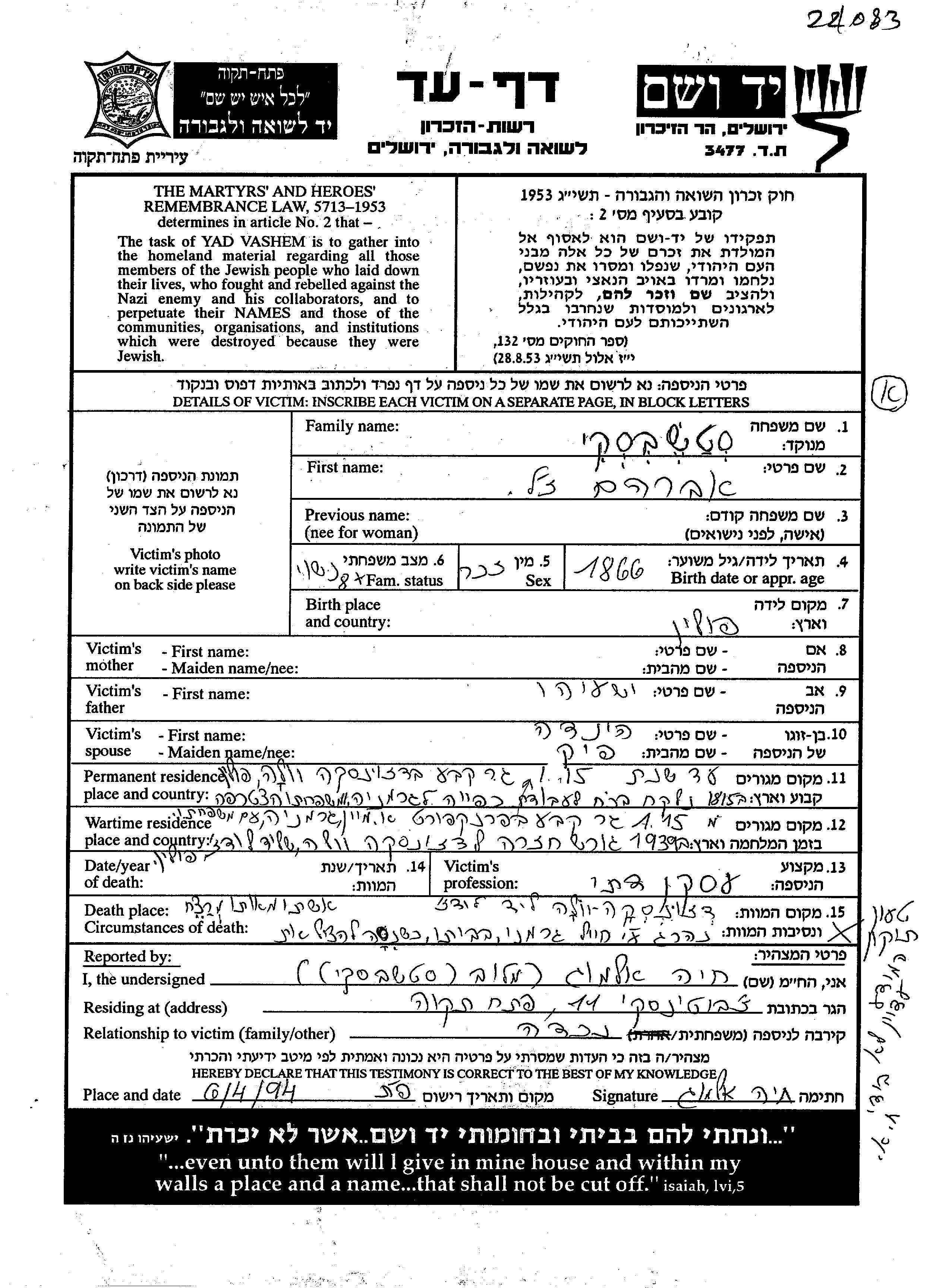Yad Vashem - Pages of Testimony Names Memorial Collection