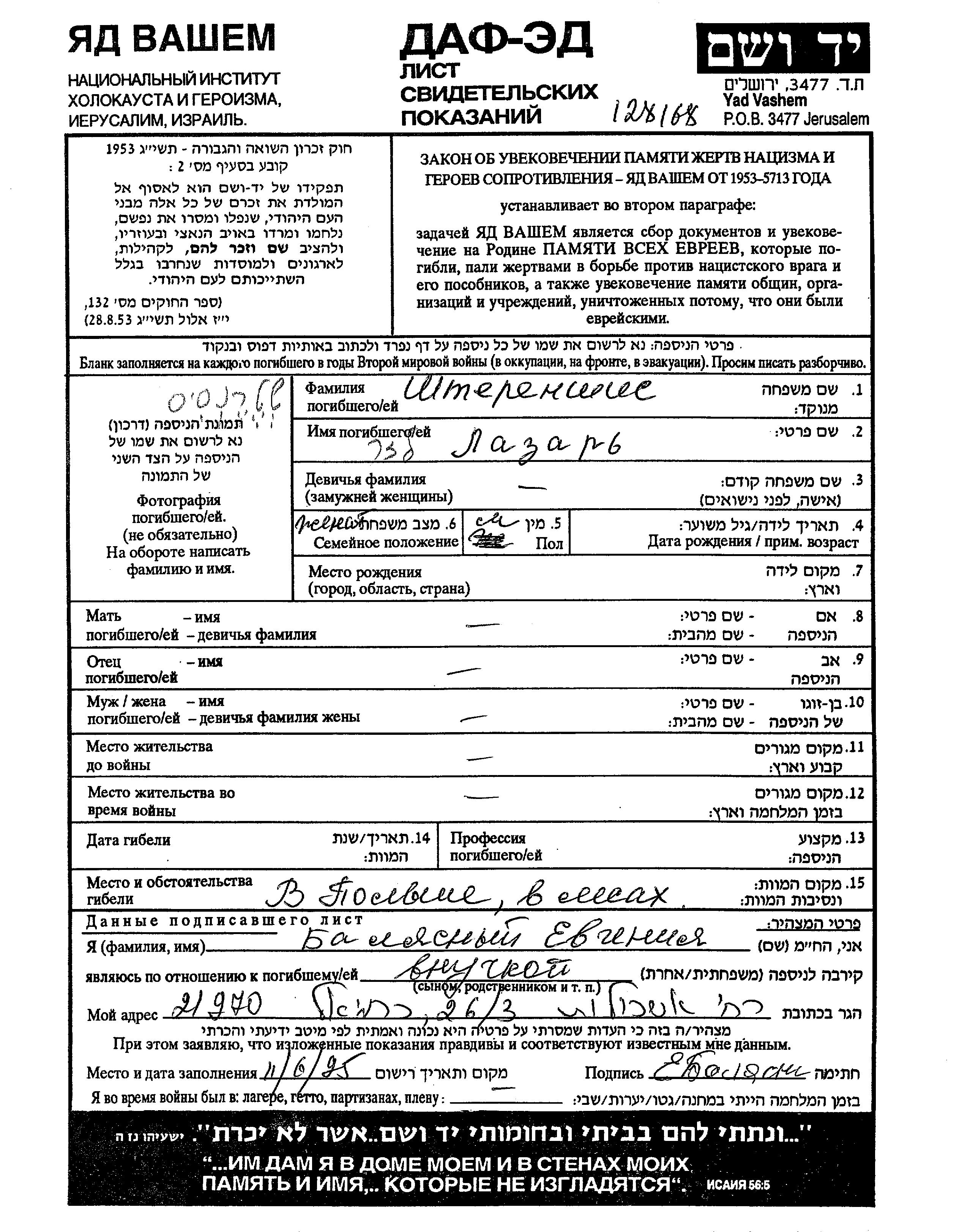 Recherche par nom du dépositeur de la Feuille de témoignage. Cette recherché indique aussi les noms de jeunes filles.