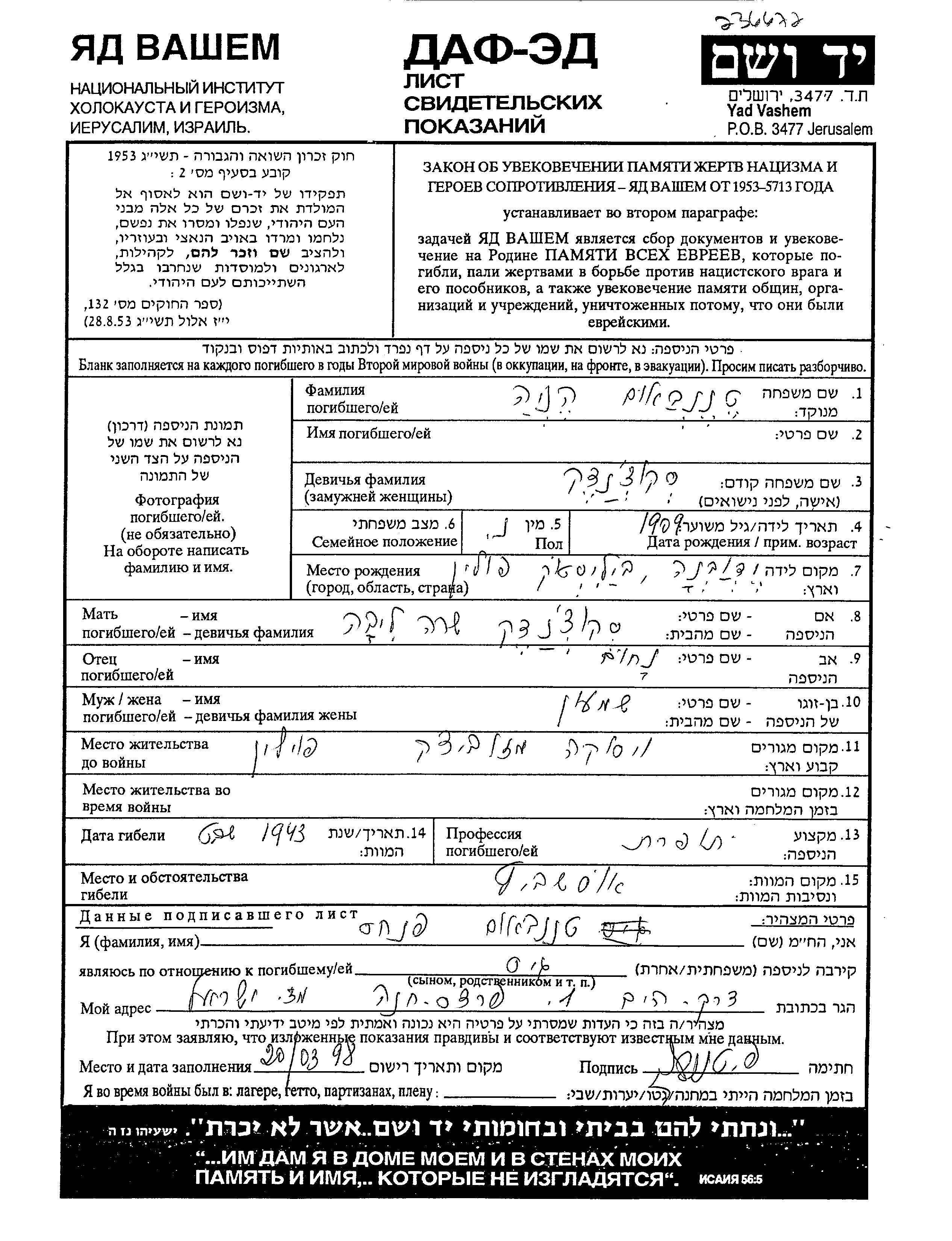Yad Vashem - Pages of Testimony Names Memorial Collection