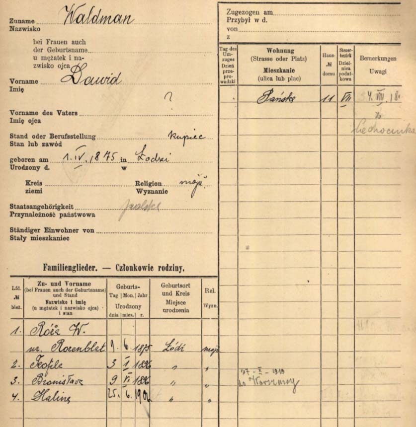 Waldman Teofila 1896 endroit inconnu, Record from the population census
