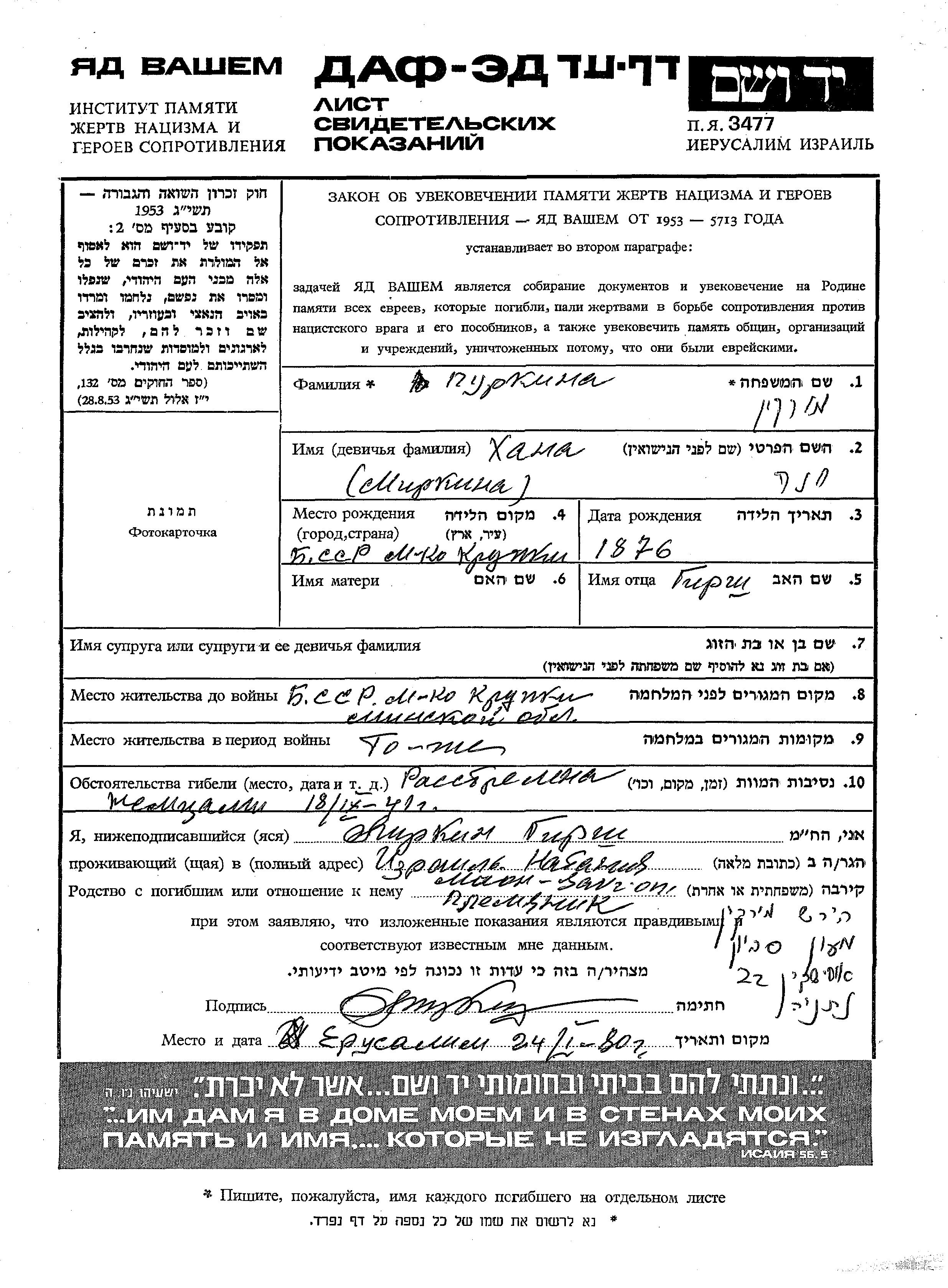 Yad Vashem - Pages of Testimony Names Memorial Collection