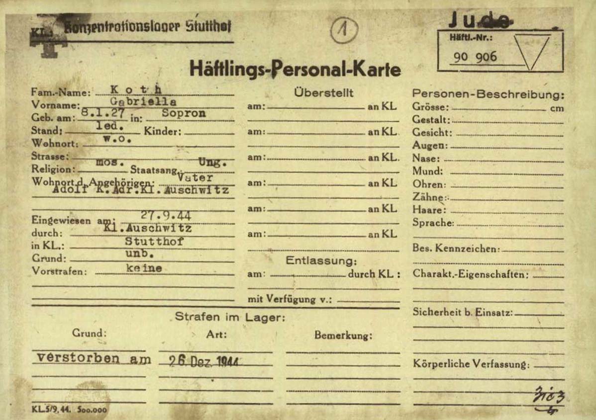 Gabriella Koth est née à Sopron, Hongrie en 1927. Elle était Élève. Avant la seconde guerre mondiale elle vivait à Sopron, Hongrie.