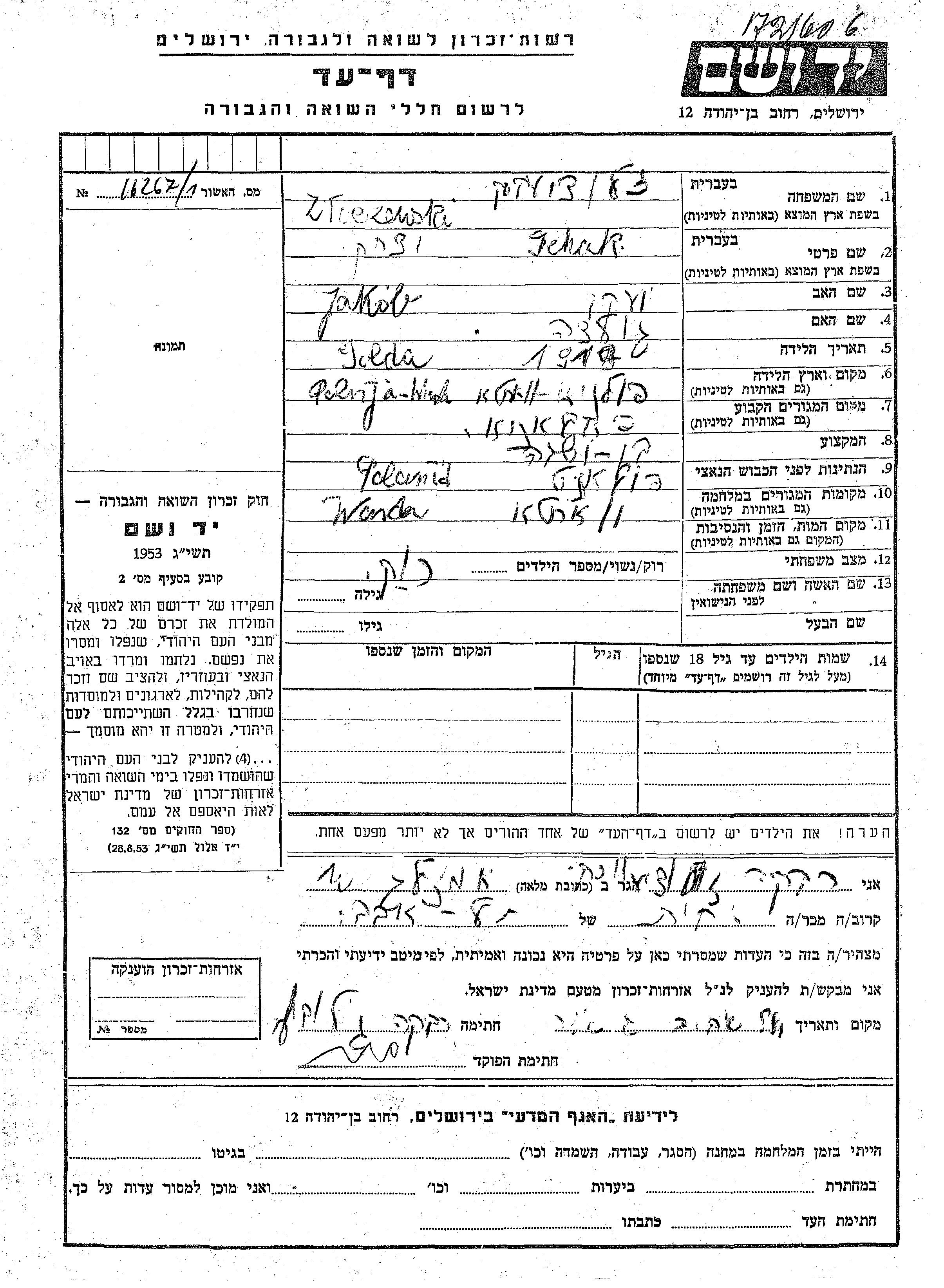 Yad Vashem - Pages of Testimony Names Memorial Collection