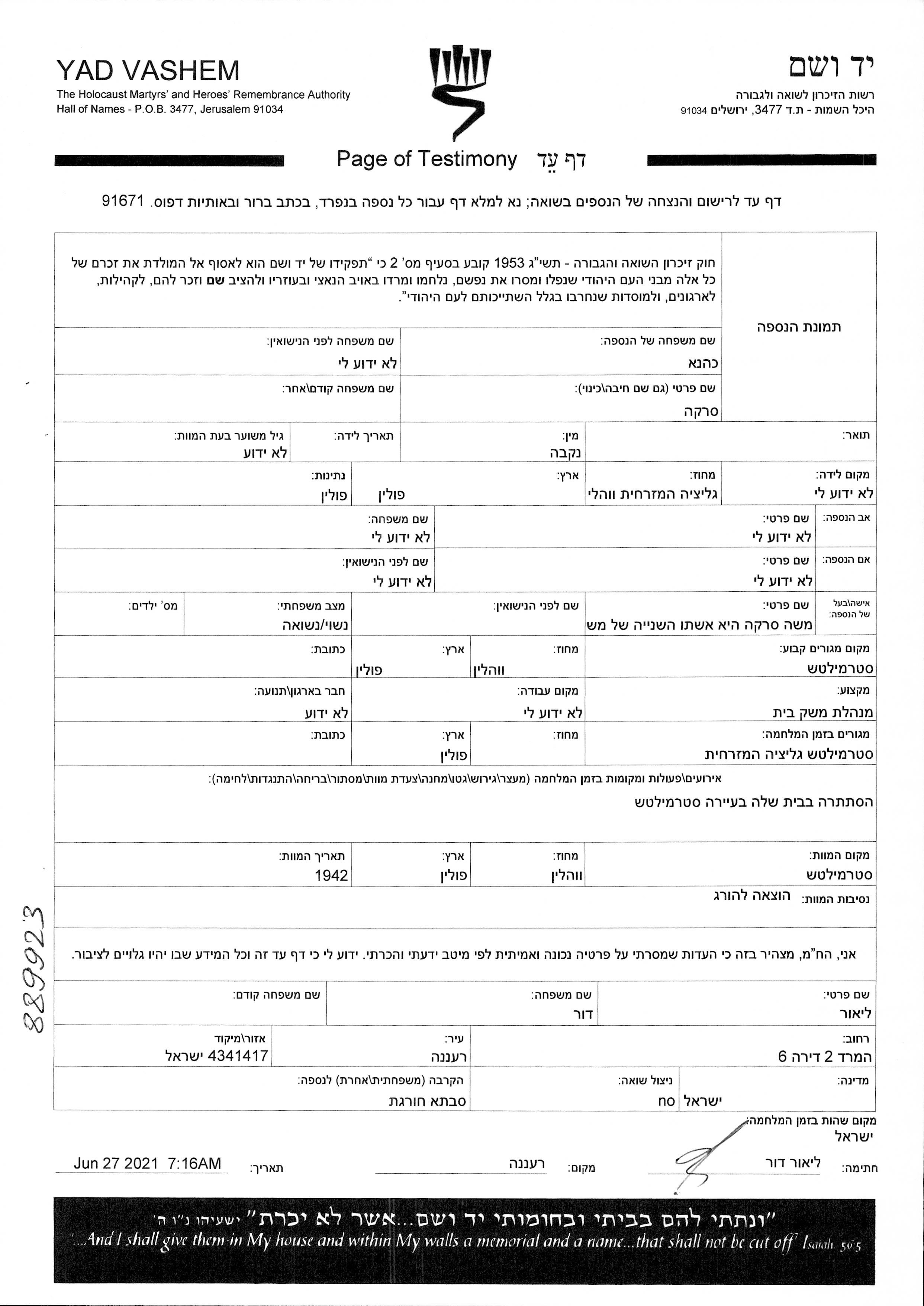 Kahana | Serka | Strzemilcze, Pologne | Feuille de témoignage (digitale-signée) | |