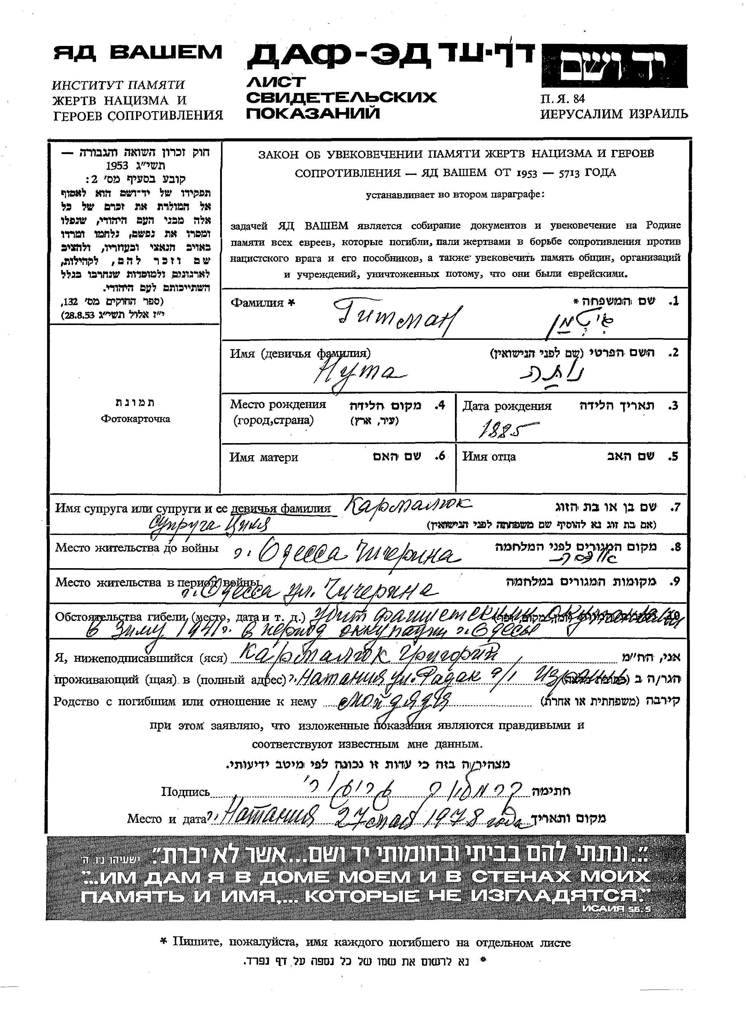 Yad Vashem - Pages of Testimony Names Memorial Collection