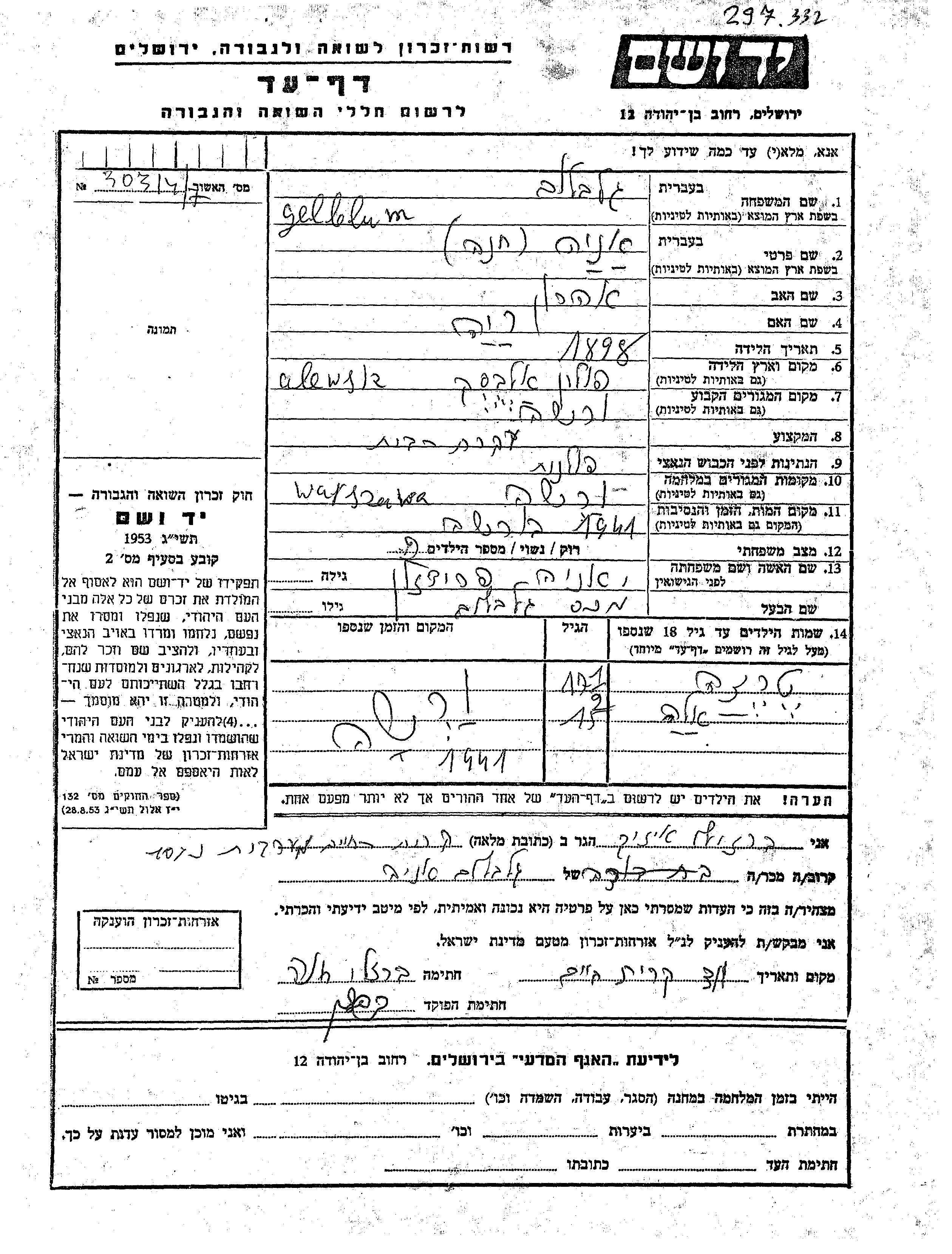 Yad Vashem - Pages of Testimony Names Memorial Collection