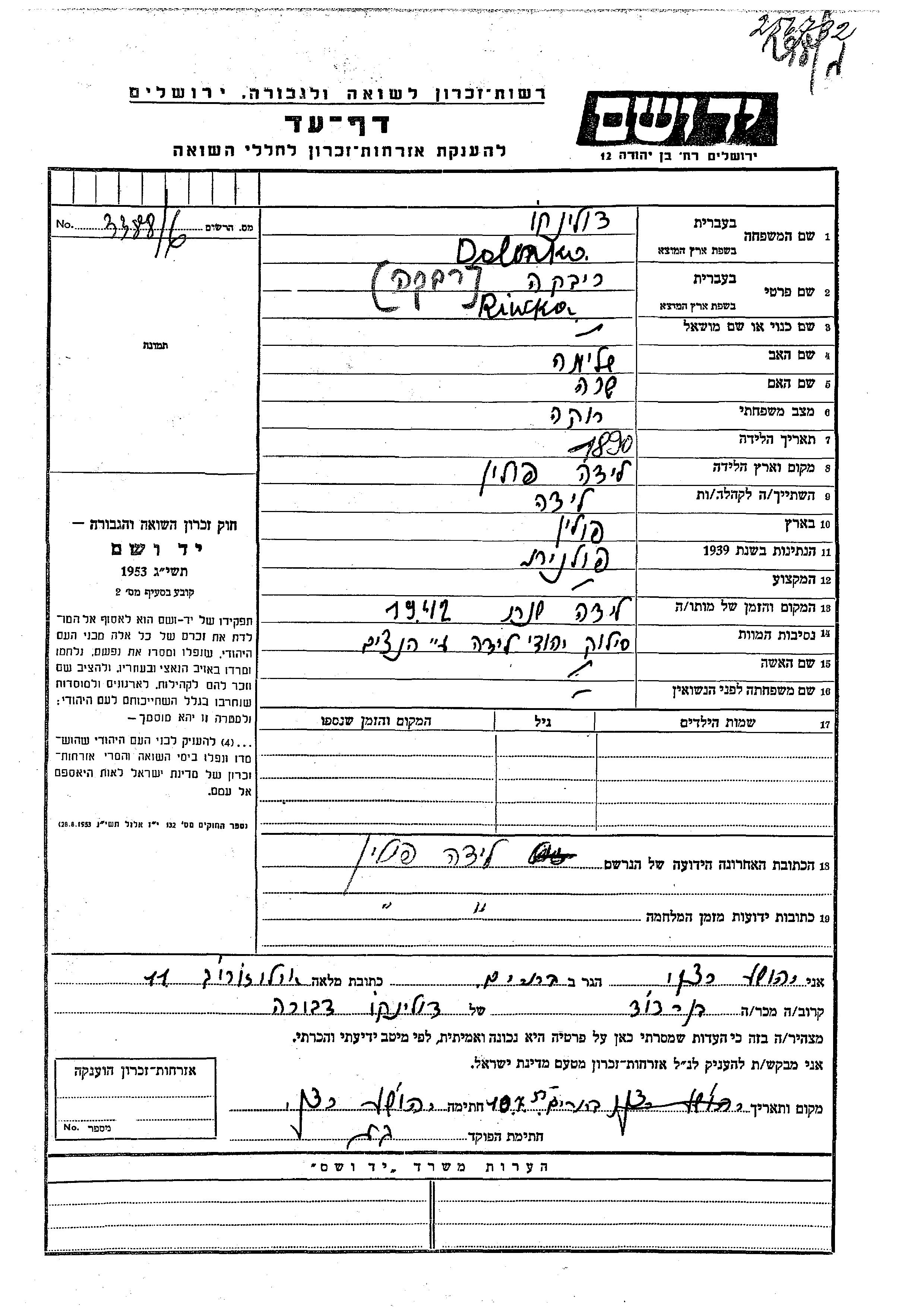 Yad Vashem - Pages of Testimony Names Memorial Collection