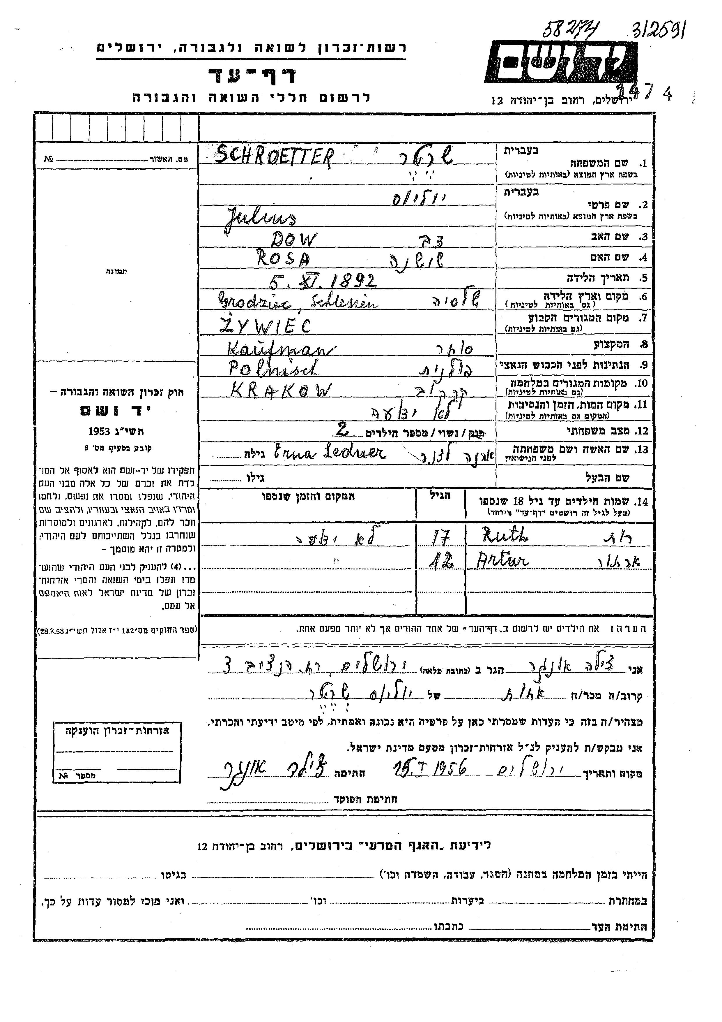 Schroetter Artur Zywiec, Pologne Feuille de témoignage