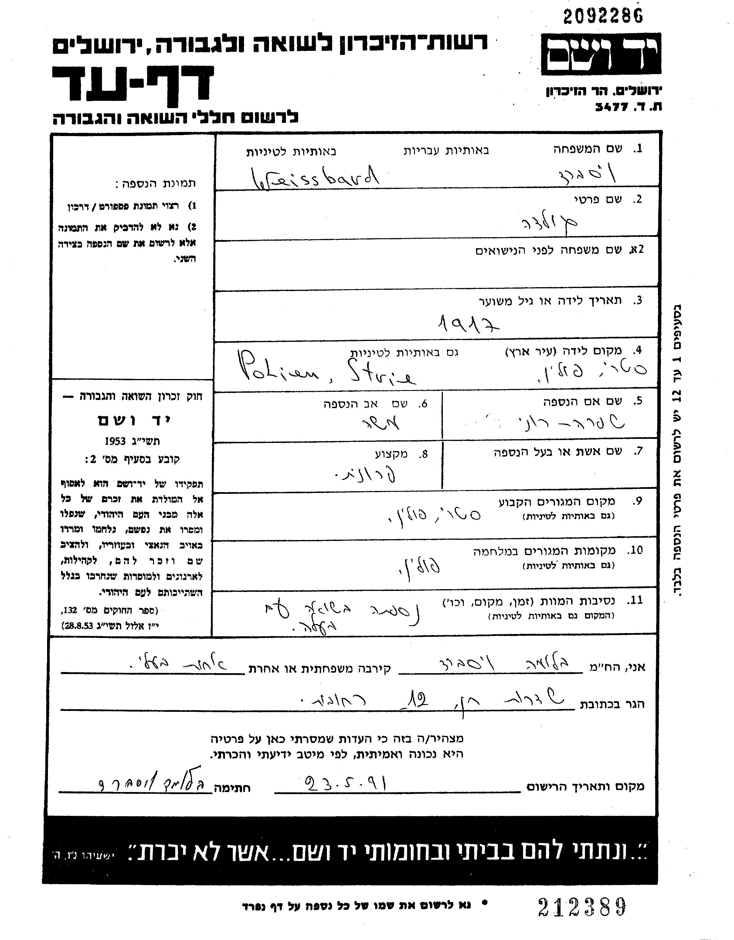 Yad Vashem - Pages of Testimony Names Memorial Collection