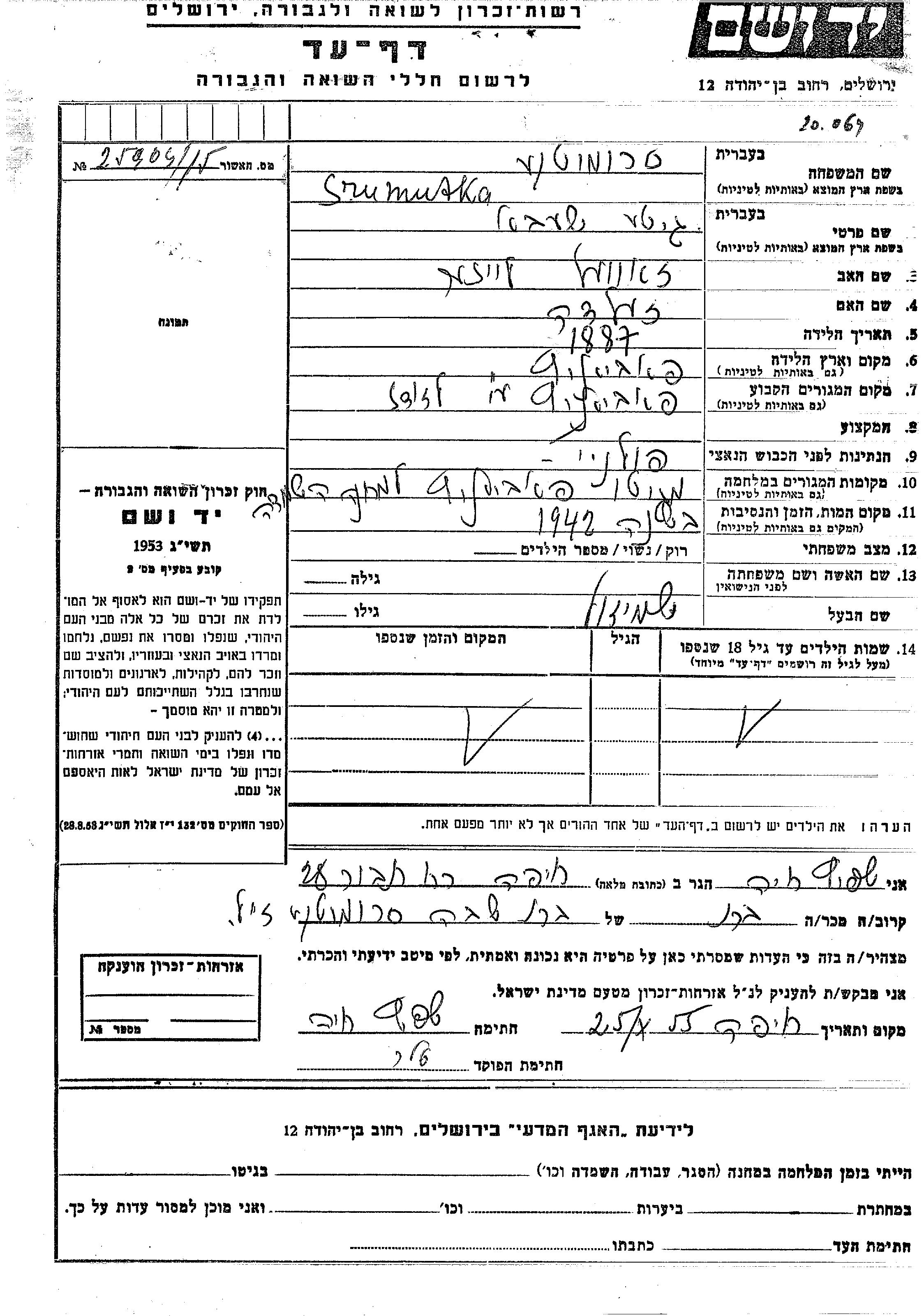 Yad Vashem - Pages of Testimony Names Memorial Collection