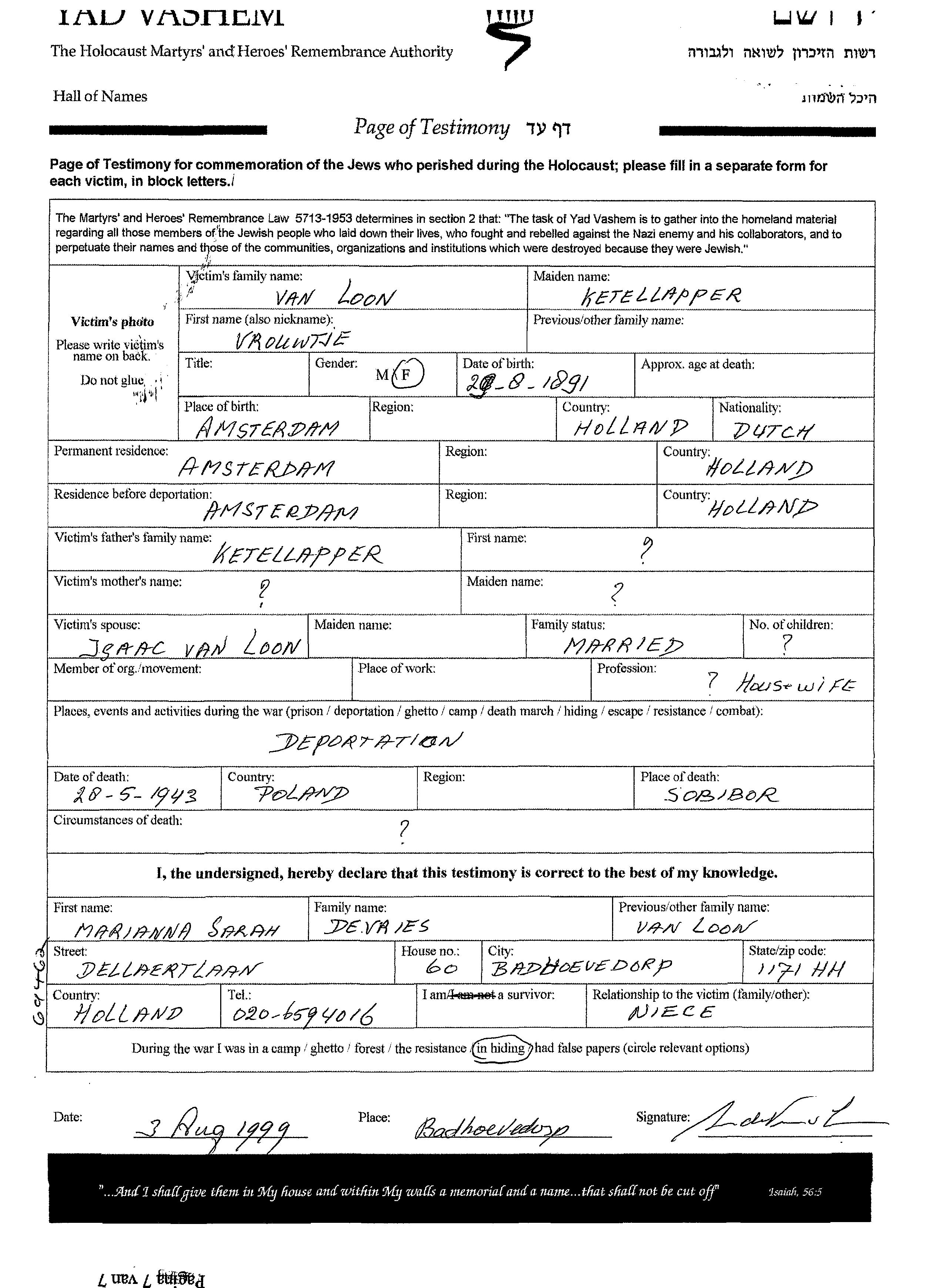 Yad Vashem - Pages of Testimony Names Memorial Collection