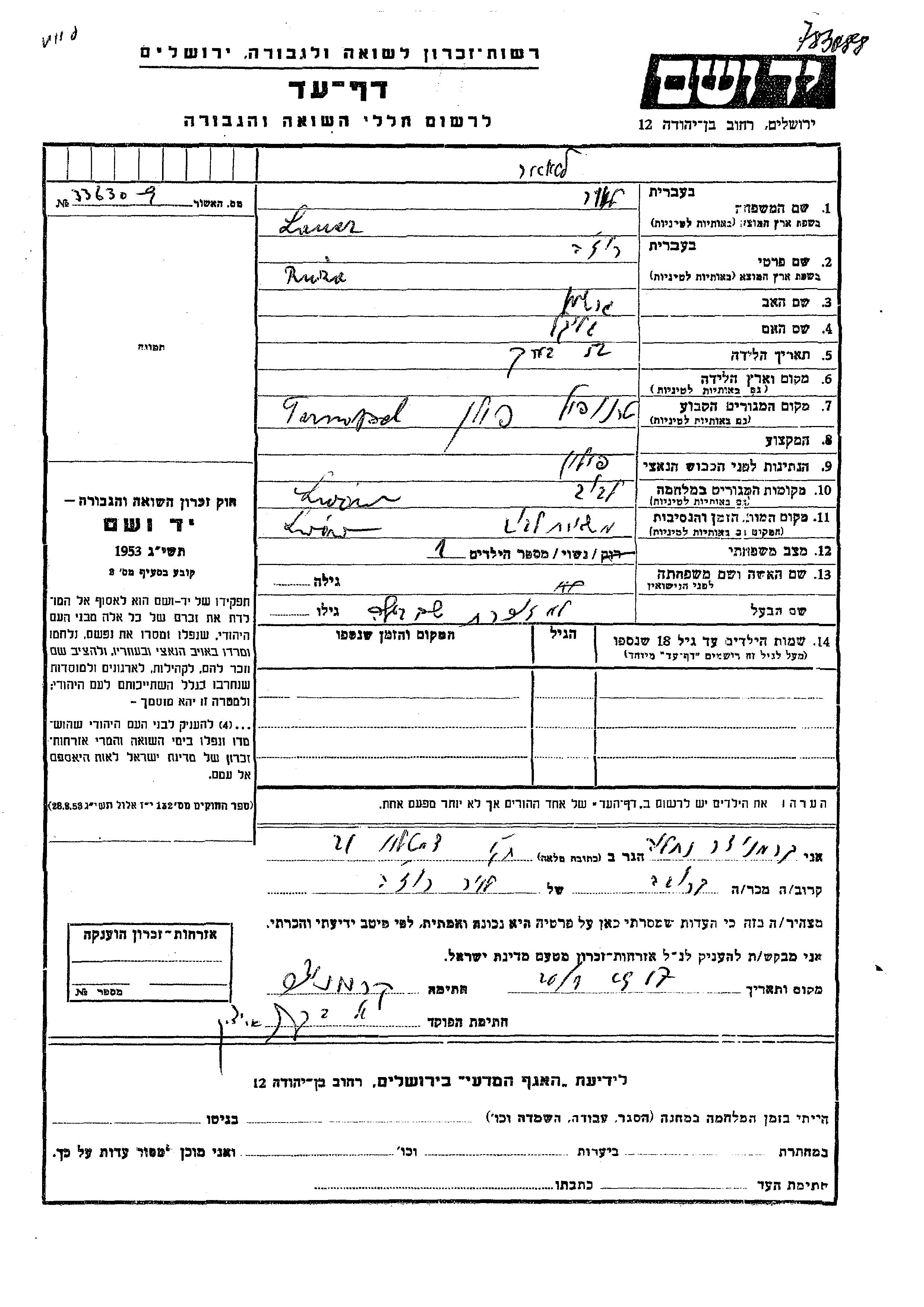 Yad Vashem - Pages of Testimony Names Memorial Collection